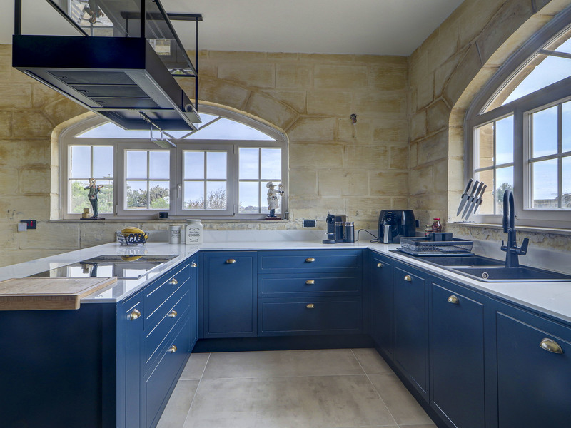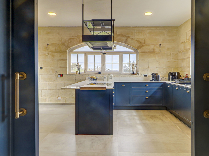 The upper level comprises an open-plan living area, two further bedrooms serviced by a large family bathroom. One of the bedrooms provides direct access to the roof, offering breathtaking open country views.
