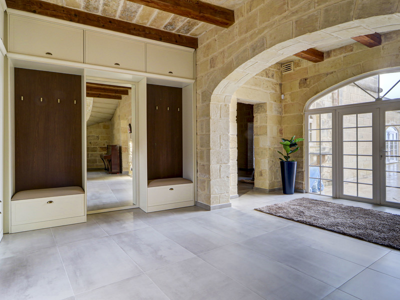 The central hall also provides access to the courtyard, expansive gardens, and the swimming pool area. The property boasts a generously sized pool surrounded by ample decking and elegant entertaining spaces, perfectly suited for relaxing outdoor living. The landscaped gardens are equipped with an automatic irrigation system, a fully licensed borehole, and are enriched by a selection of mature citrus and olive trees. Adjacent to the garden, a large washroom offers flexibility as a games room or recreational space.