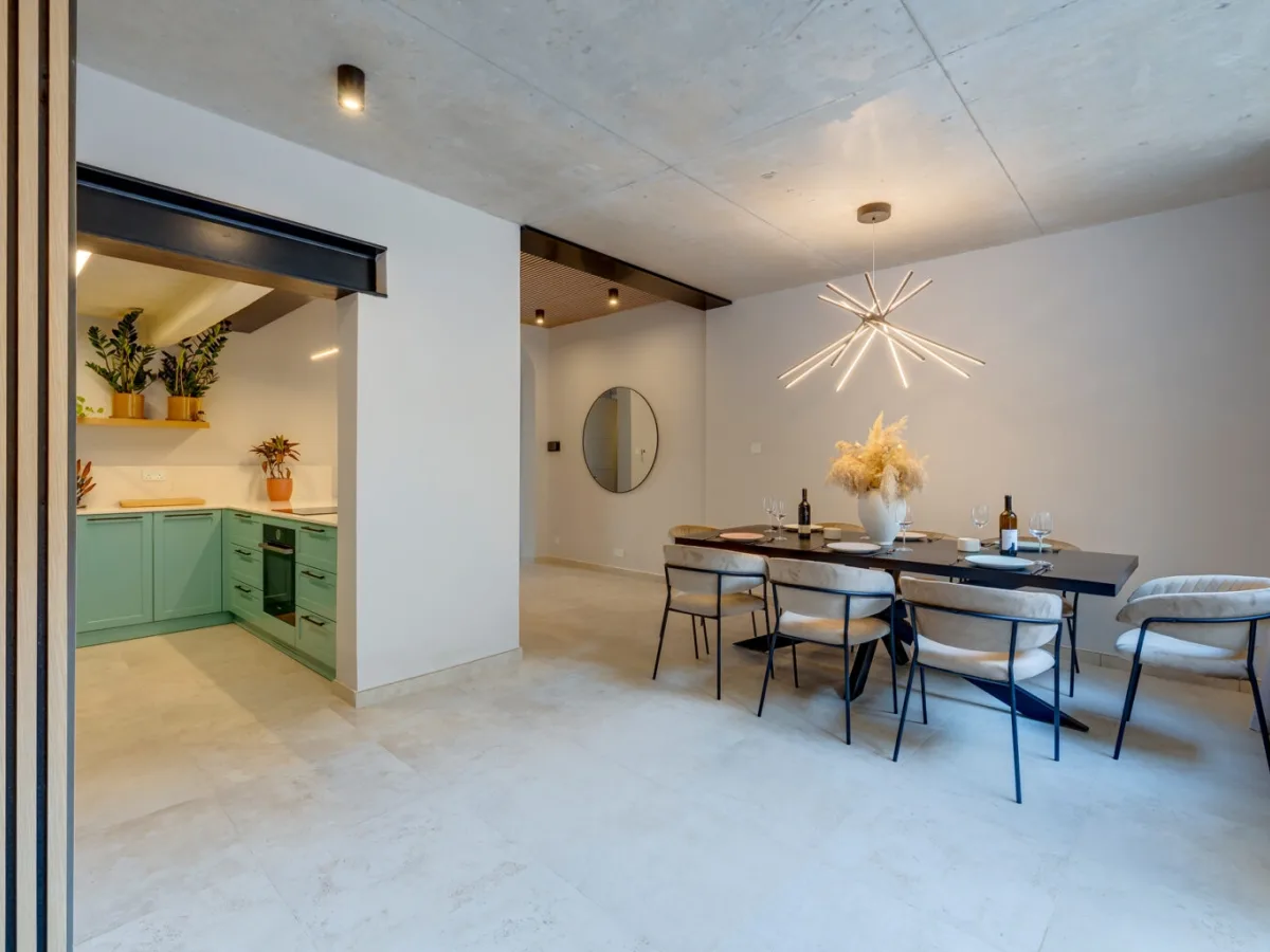 The residence features three generously sized bedrooms, each complemented by a modern en-suite shower room. The open-plan living and dining area flows effortlessly into a serene, landscaped garden, an ideal setting for relaxation or hosting guests.