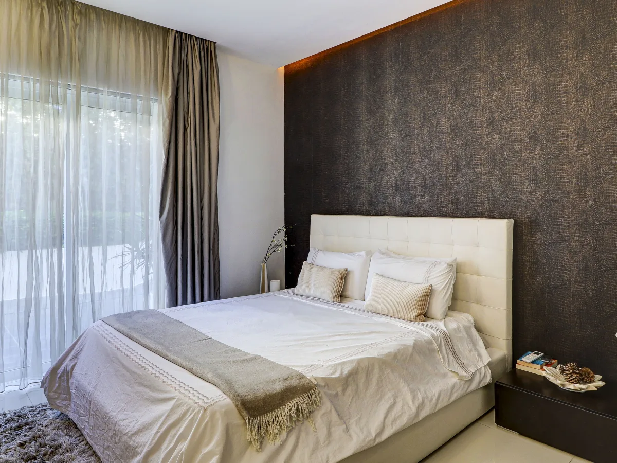 The lower floor reveals a thoughtfully planned layout, featuring three double bedrooms, including a master suite with en-suite facilities, a main bathroom, a dedicated study, and a bespoke Fino kitchen, which in turn leads onto the property’s crown jewel, a large 150sqm mature private garden. Surrounded by lush greenery, this outdoor sanctuary offers absolute privacy and is perfectly designed for al fresco dining, entertaining, or tranquil relaxation.