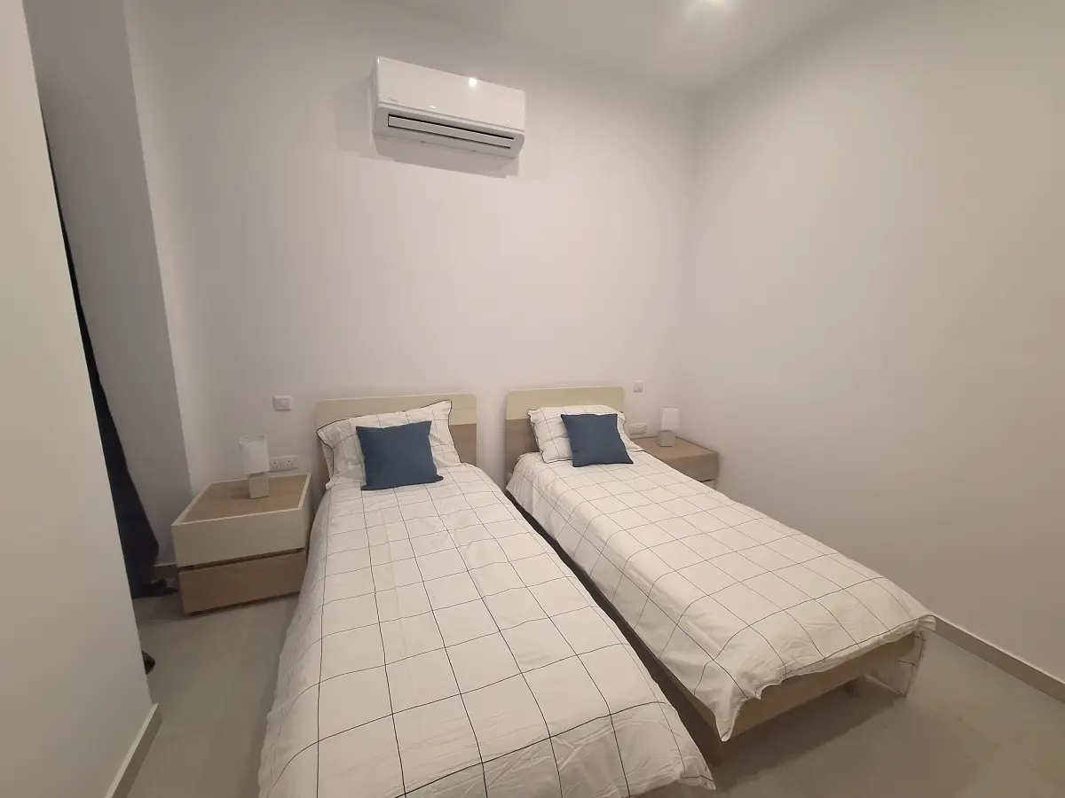 The apartment a sophisticated open-plan layout, featuring a chic living and dining area paired with a modern kitchen and breakfast nook, complete with high-end appliances. Situated on the ground floor, the property boasts two double bedrooms, the master suite with an en-suite and a single bedroom . A guest bathroom enhances functionality, while a separate washroom and a private back terrace extending from the bedroom area adds practicality and a touch of outdoor serenity.