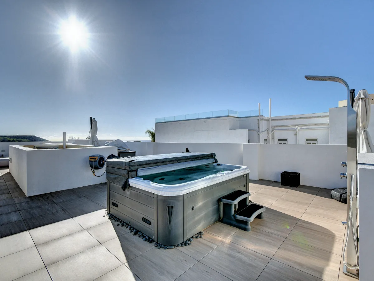 Inside, the well-thought-out layout includes, a welcoming entrance hall leading to a bright and airy living area with stunning open views, a separate, fully fitted kitchen and dining area, a guest toilet and a fully equipped washroom. The sleeping quarters consist of three generously sized double bedrooms, all with en-suite facilities and televisions. The main bedroom boasts a full walk-in wardrobe and a luxurious his and hers en-suite facilities.