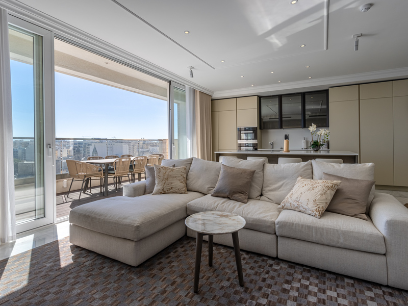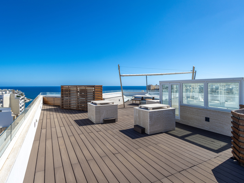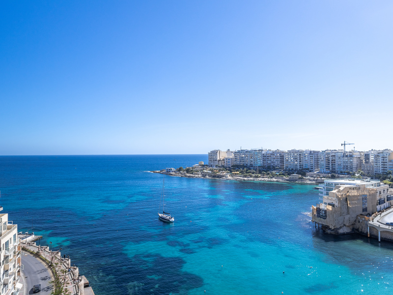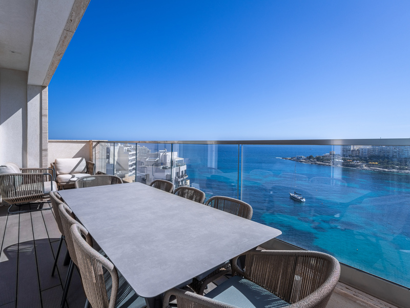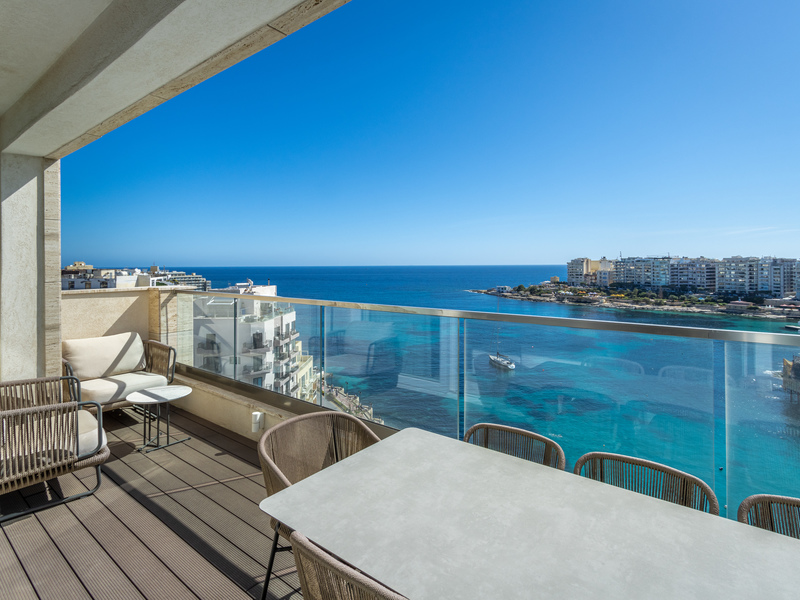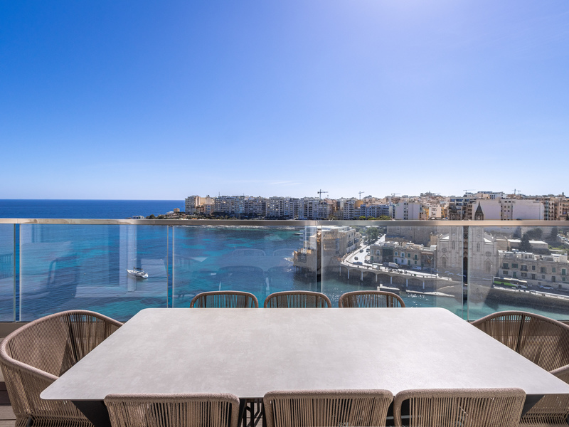 This stunning property offers over 175 sqm of living space and the main accommodation is spread on one level, however, this unique residence also benefits from an unparalleled private roof terrace with breathtaking and panoramic views, ideal for entertaining. The two private lifts open into an impressive entrance which leads into the open plan living, dining, kitchen, breakfast, and family area overlooking the sea and picturesque Balluta Bay with a great front terrace ideal for al fresco dining.
