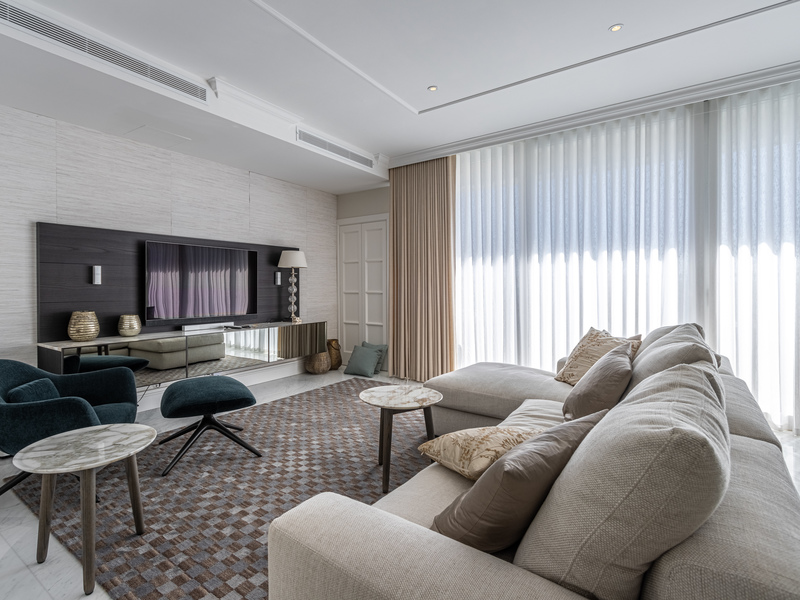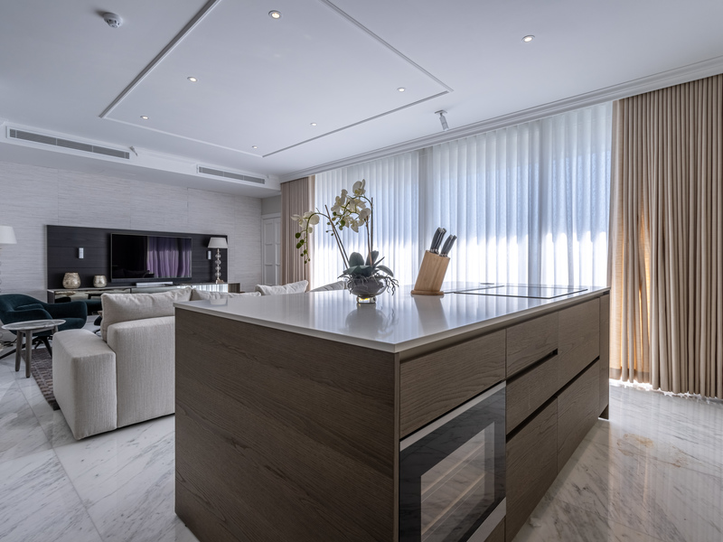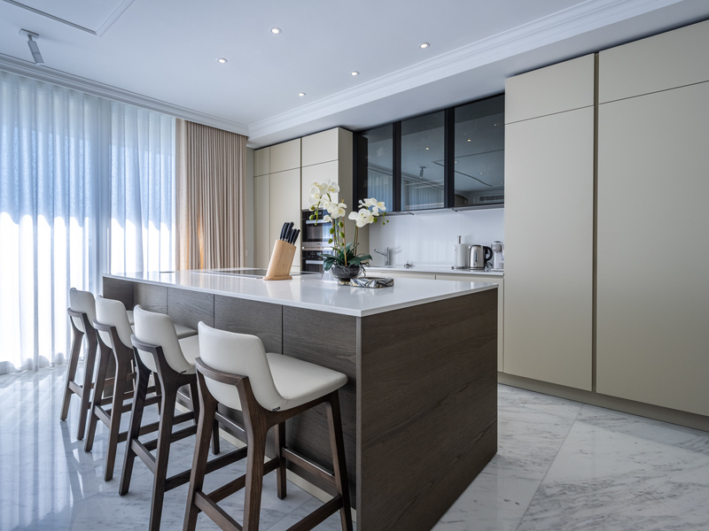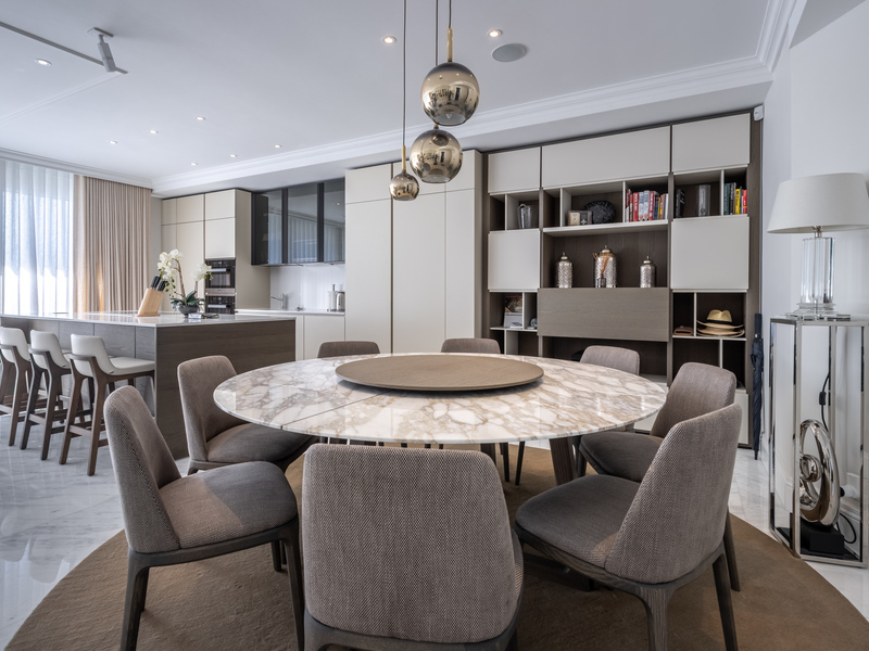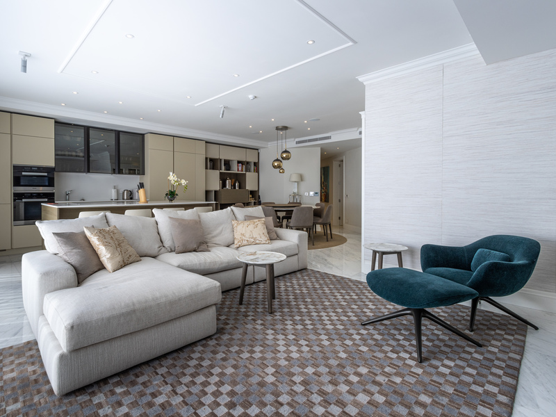 Further complimenting this property are three double bedrooms, two with en suite bathrooms also leading onto a sizable private terrace and a family bathroom, washroom, and study area. The property also benefits from an underlying parking space and is finished to the highest specifications including marble flooring and bathrooms throughout, high-end furniture all included. A rare find.