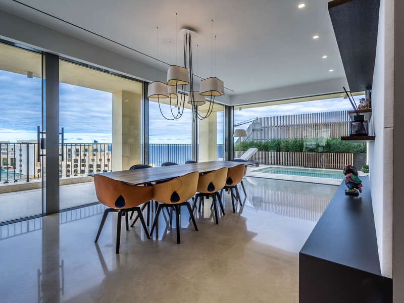 The property is beautifully furnished with stunning pieces, leading from the general living area towards a large kitchen with top of the range appliances towards the general living space and accommodation. The master bedroom boasts its unique en-suite bathroom with twin sinks as well as a private terrace and walk in wardrobe . The property is surrounded by open windows providing ample light and giving an outdoor feeling towards the interior space. Further complimenting this Penthouse are 2 car spaces. A truly rare and luxurious property for those wanting a part of the bespoke lifestyle.