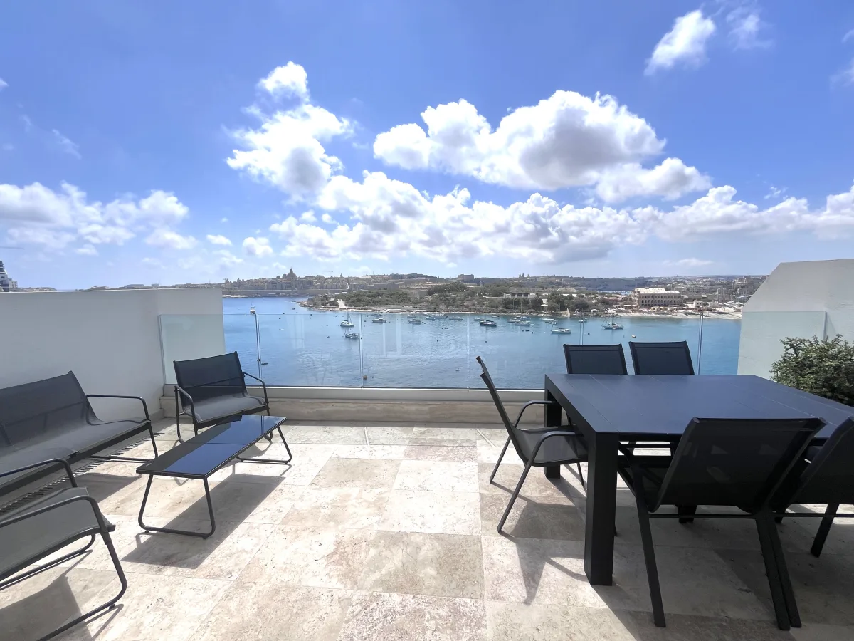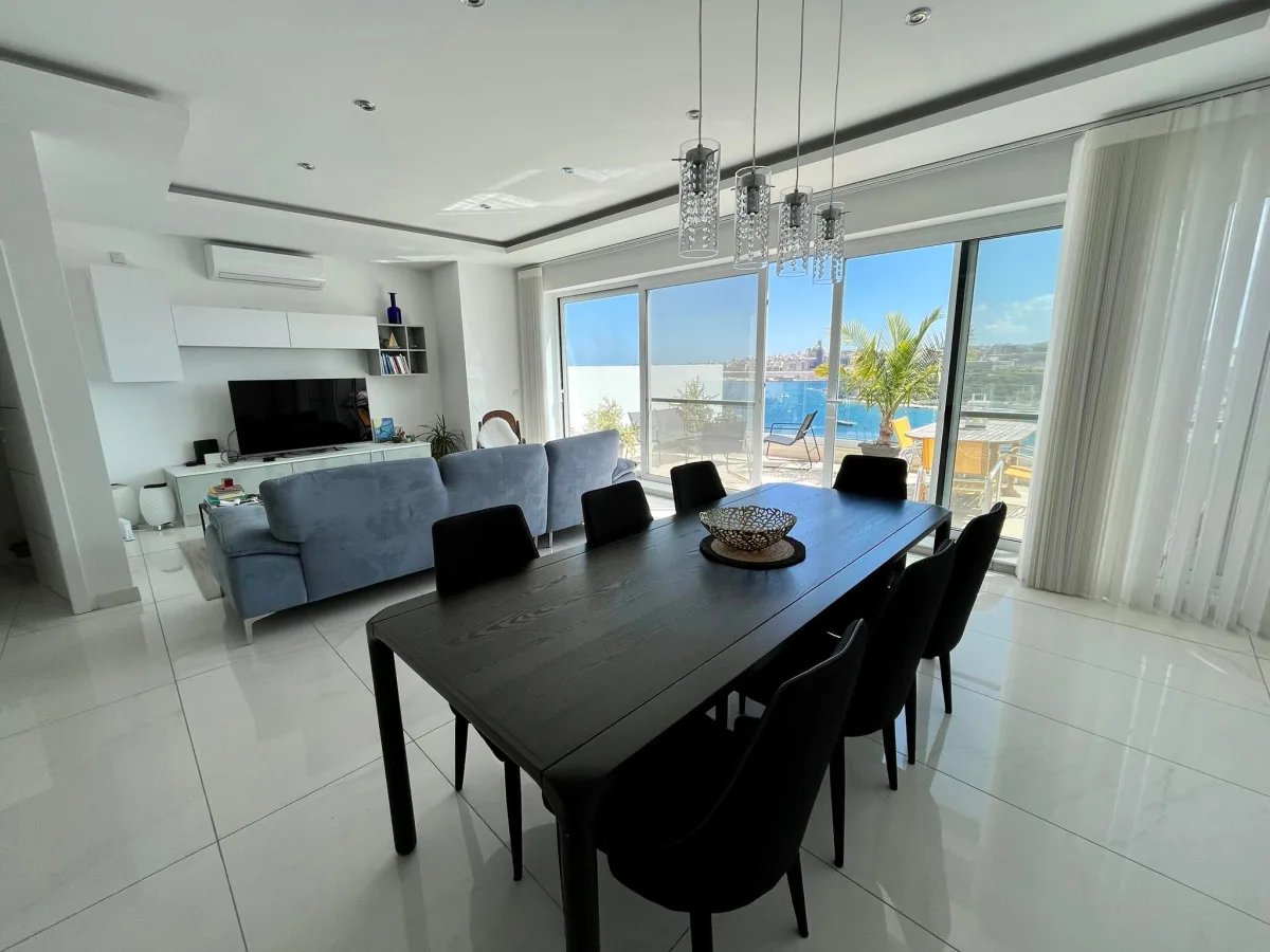 The layout comprises a large open plan kitchen, living and dining area leading to a spacious front terrace with the open sea, marina, and Valletta bastion views. Further complimenting this property are three double bedrooms, the main with en-suite facilities, a guest bathroom, spacious internal laundry room with a drying area, a large study or extra living area, and a back terrace. Separate car space is optional. Truly an outstanding highly finished to detail property.