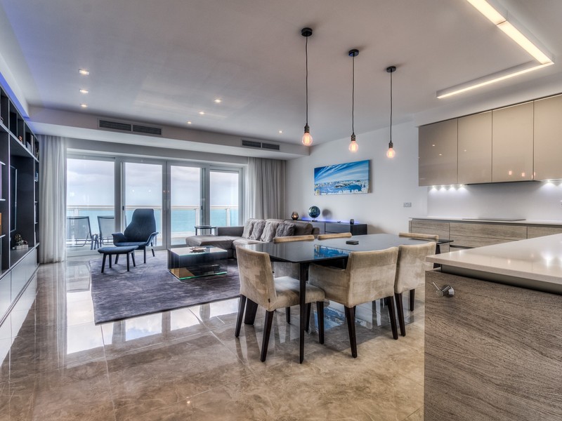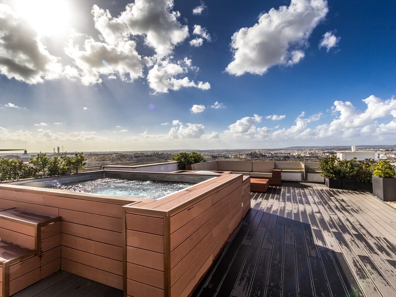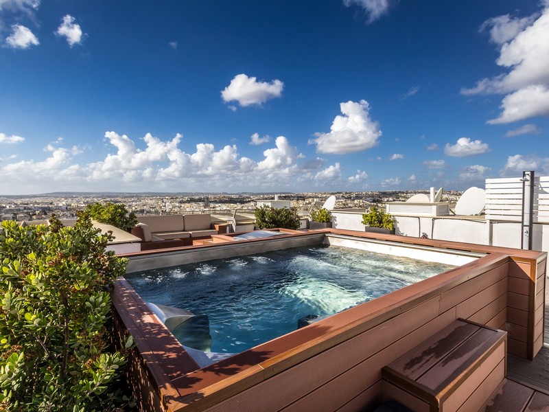 An outstanding feature of this penthouse is the expansive roof terrace, offering ample space for relaxation and entertaining, while enjoying 360-degree views across Malta, including Mdina, Valletta, and the surrounding coastline. The roof terrace is further enhanced with bespoke features such as a custom-made hot tub and a private golf putting green.