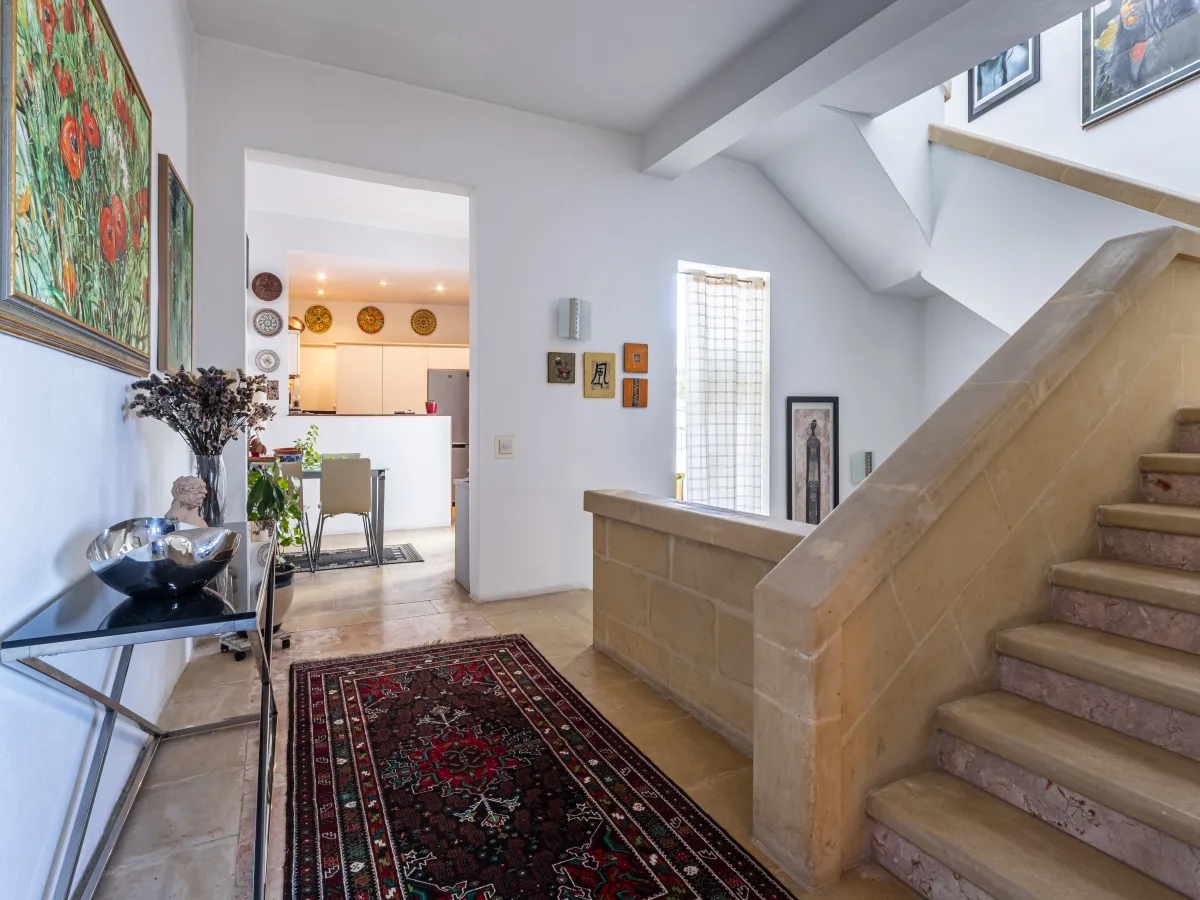 The property boasts three generously sized double bedrooms, two of which enjoy en-suite bathrooms, a guest WC, washroom, utility room and a spacious front terrace with a BBQ area, ideal for entertaining while enjoying open country views and extensive vistas of St. Paul’s Bay. Optional a two-car garage at street-level. Freehold.