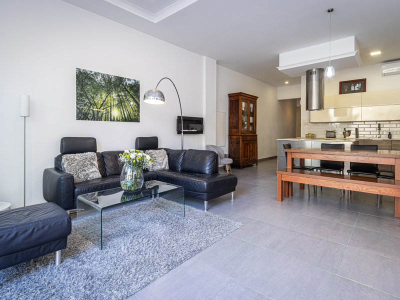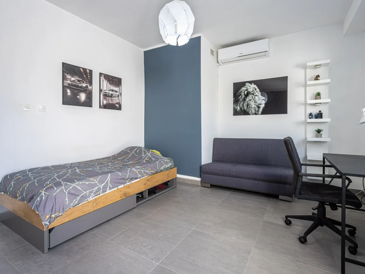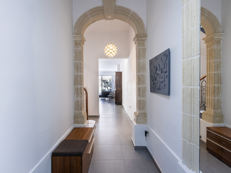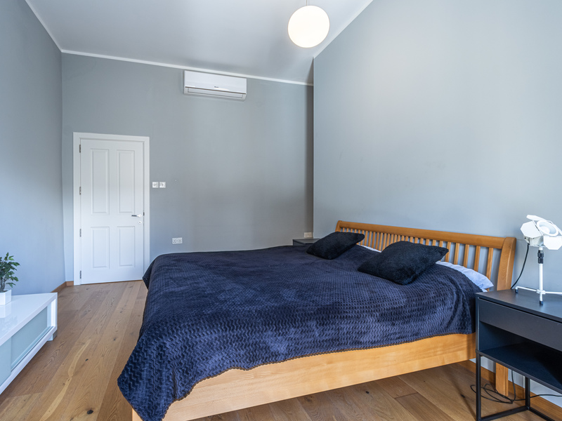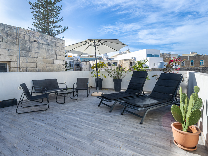 A sleek marble staircase leads to the first floor, where a spacious double bedroom opens onto a traditional Maltese balcony, while the main bathroom offers relaxation with its bathtub and towel warmer. A practical laundry room adds convenience, and the master bedroom becomes your personal sanctuary, complete with a walk in wardrobe, a luxurious en-suite, and a balcony overlooking the peaceful pool area.