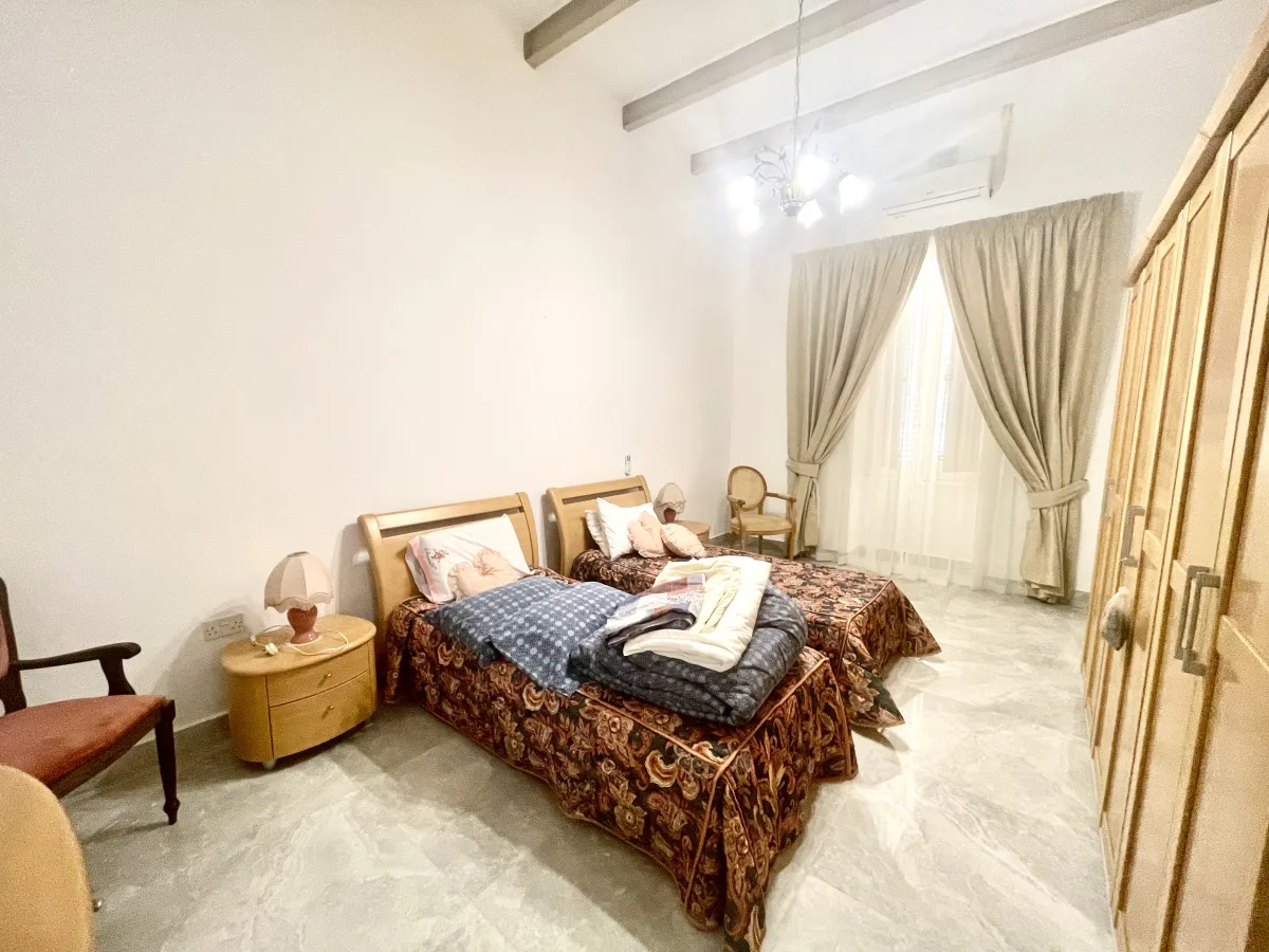 The ground floor also houses a modern, fully equipped kitchen that seamlessly connects to a spacious, furnished backyard and garden, an inviting backdrop for entertaining on balmy Maltese evenings, where laughter and memories are effortlessly woven.
