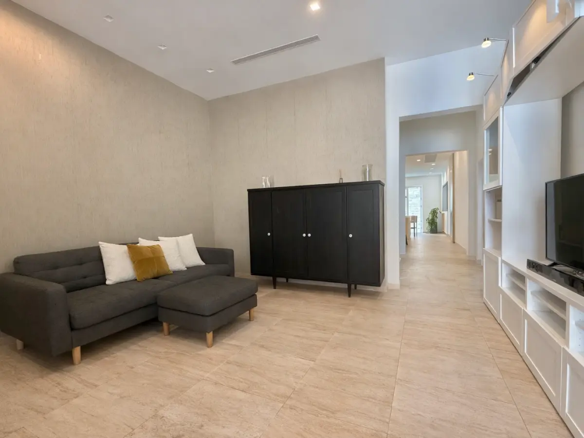 Upstairs on the first floor, the property features two well-appointed bedrooms and two bathrooms, the main bedroom having en suite facilities and a lovely back terrace overlooking the yard below. The upper level hosts a third bedroom with terrace and a washroom, leading onto the roof. This versatile rooftop space offers excellent potential as an additional entertainment area.