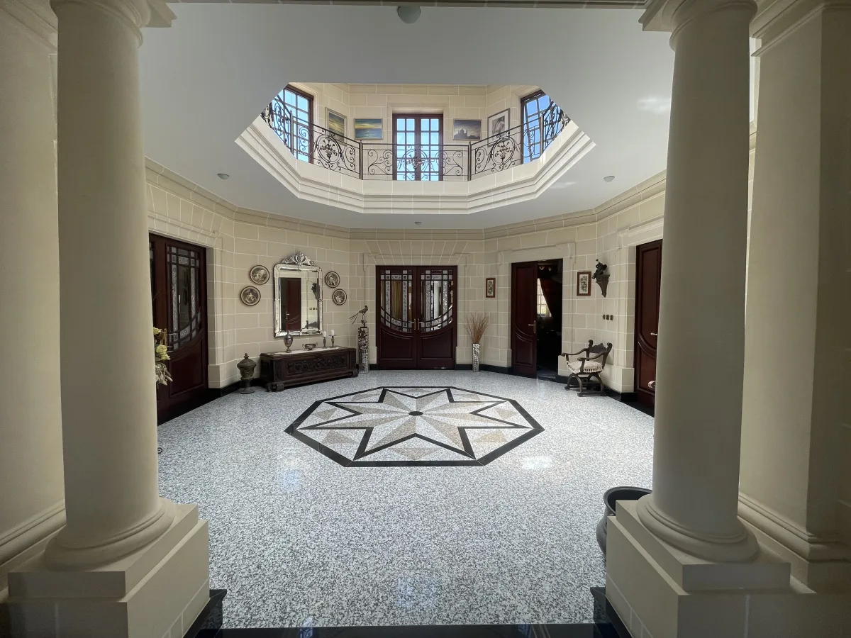 Going down to a lower level, one finds a two bedroom flatlet, storage rooms, workshop area, a laundry room and a large games room that can extend to the existing four to five car garage. There is also a driveway for more parking.