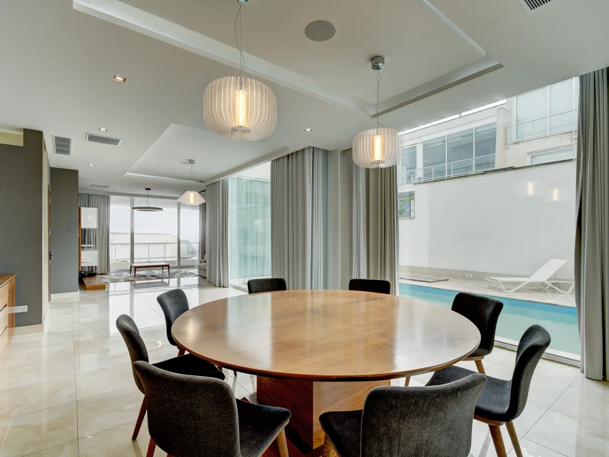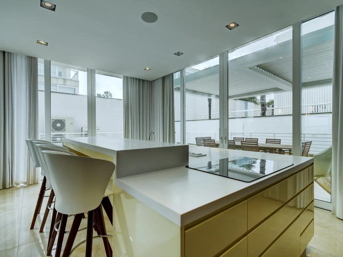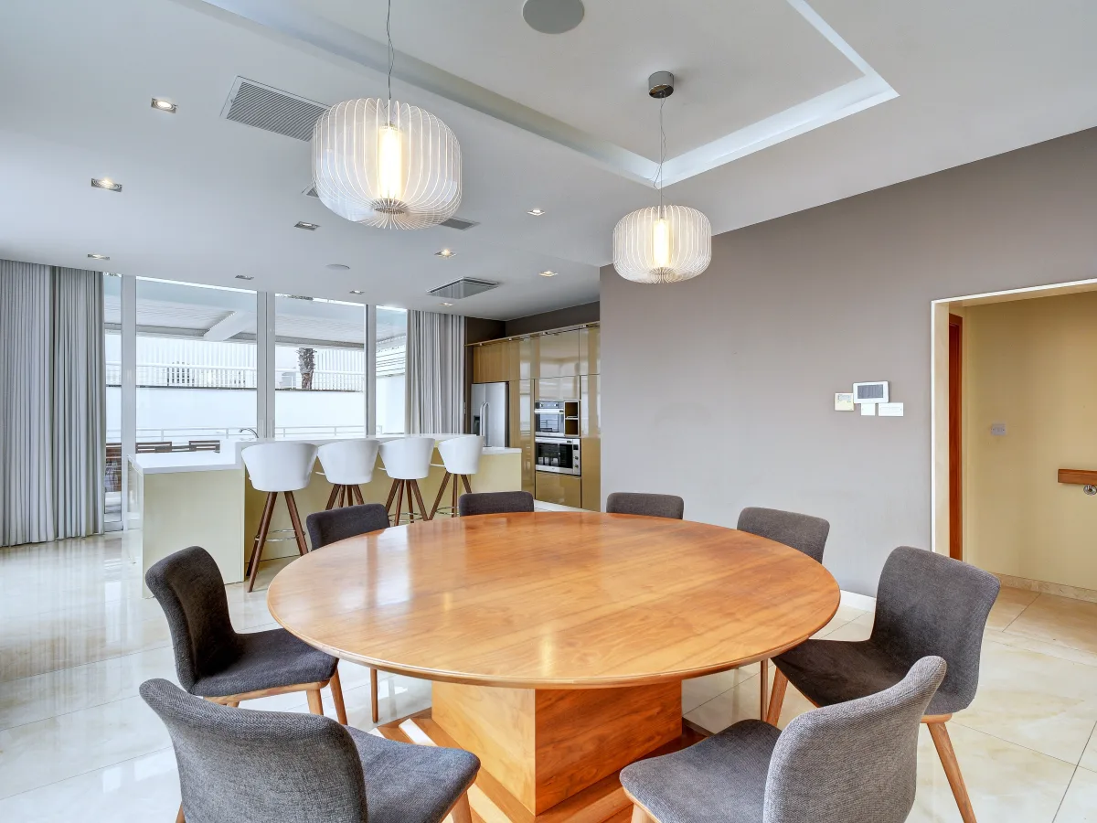 The property is tastefully designed and finished with a large open plan living, dining room and a large modern kitchen area. Off the living area is the pool and deck with views of the Mediterranean Sea. Upstairs one finds three bedrooms, all of a good size and the masters with en-suite facilities. The basement contains a large two car garage and plenty of storage space which could potentially be converted into a flat let, games room or gym area.