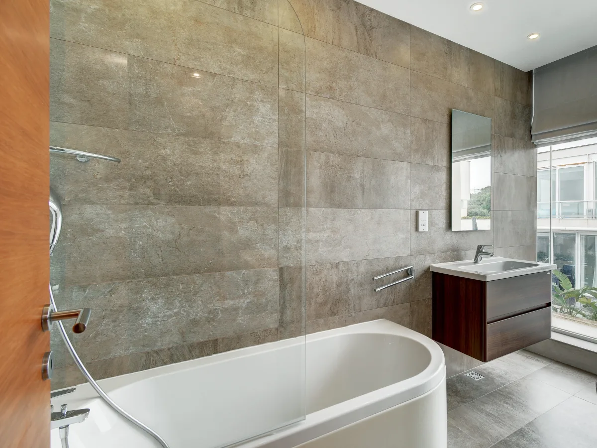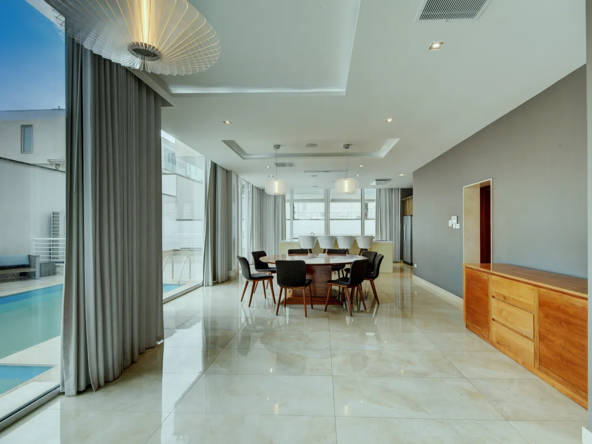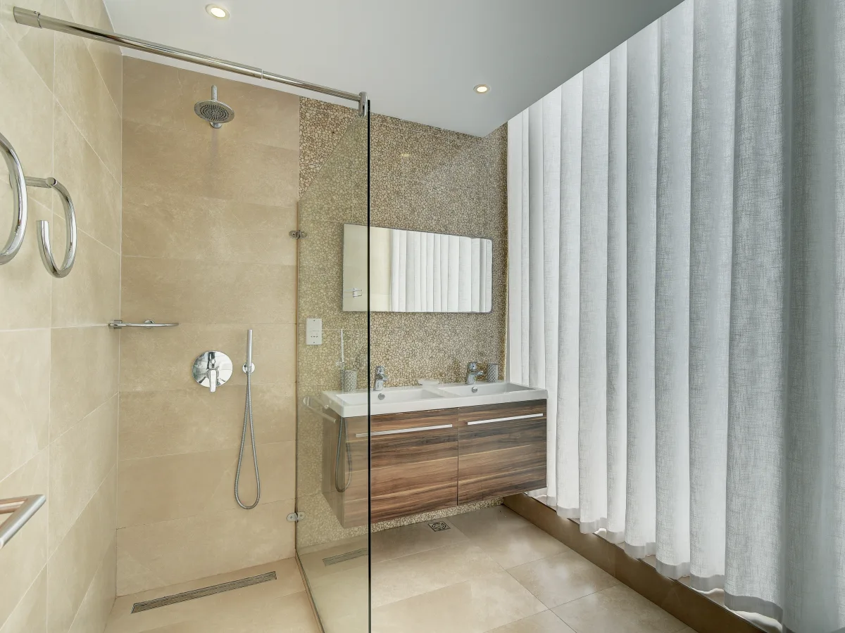 The property is tastefully designed and finished with a large open plan living, dining room and a large modern kitchen area. Off the living area is the pool and deck with views of the Mediterranean Sea. Upstairs one finds three bedrooms, all of a good size and the masters with en-suite facilities. The basement contains a large two car garage and plenty of storage space which could potentially be converted into a flat let, games room or gym area.