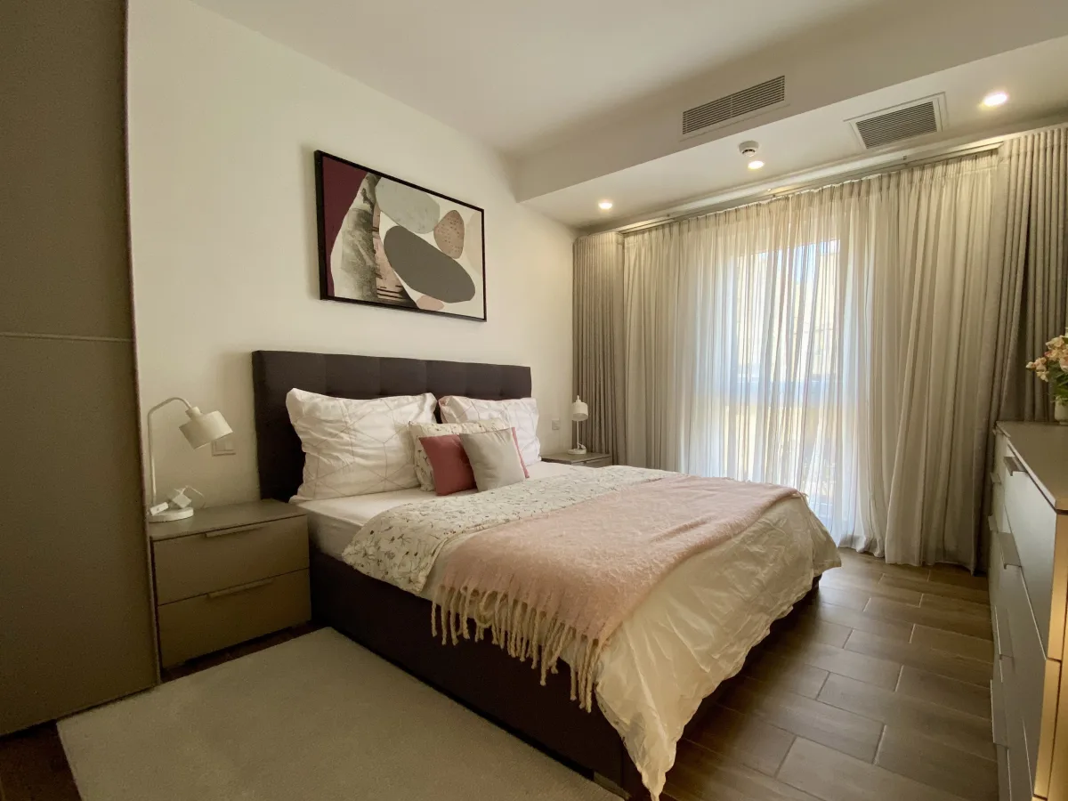 Brand new and in pristine condition, the property is being offered fully furnished with bespoke, high end designer fittings and finishes throughout. At its core lies a magnificent open plan kitchen, fully equipped with premium integrated appliances, and centered around a grand island counter, seamlessly flowing into the spacious sitting and dining area and out onto the panoramic terrace.