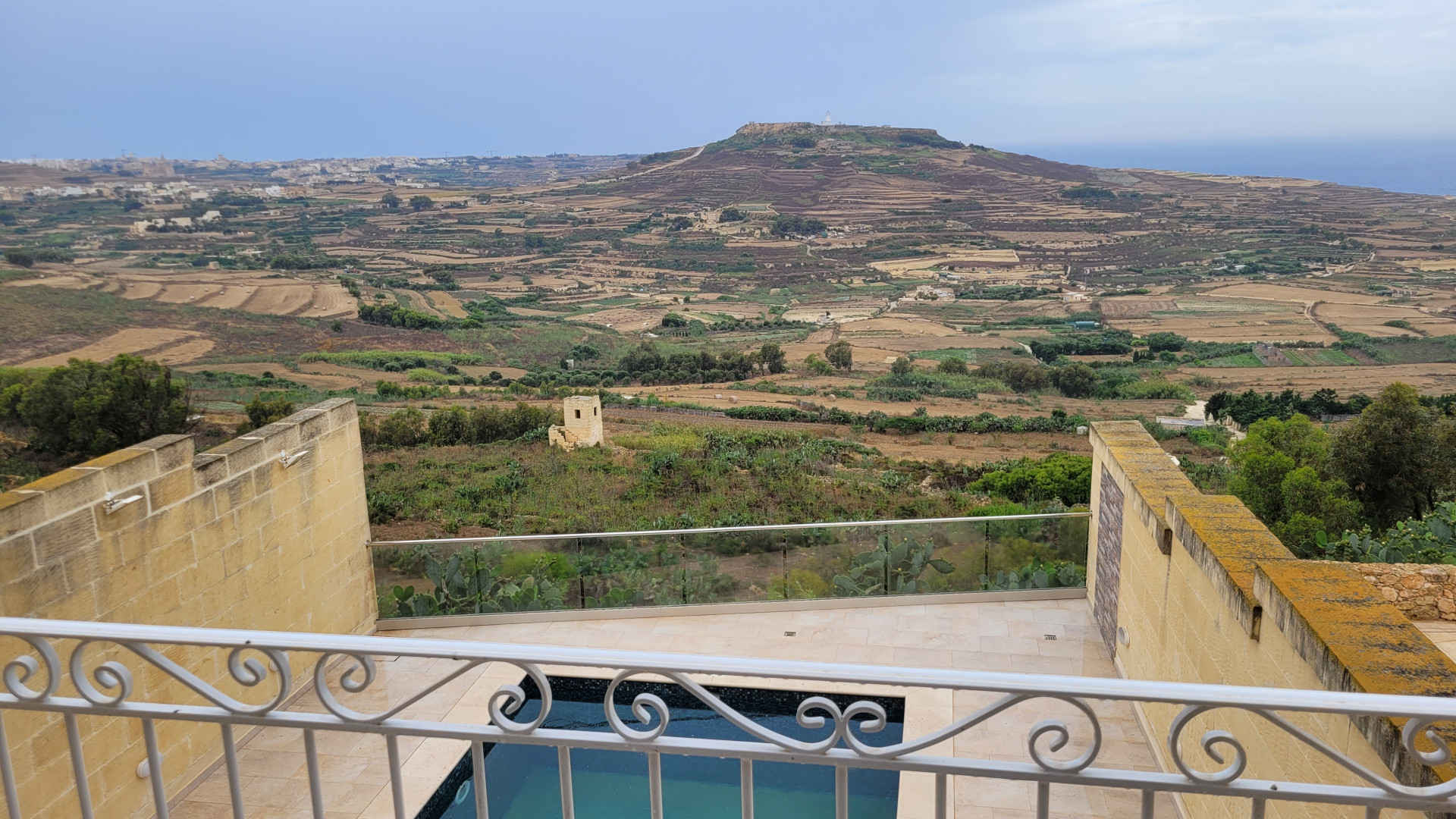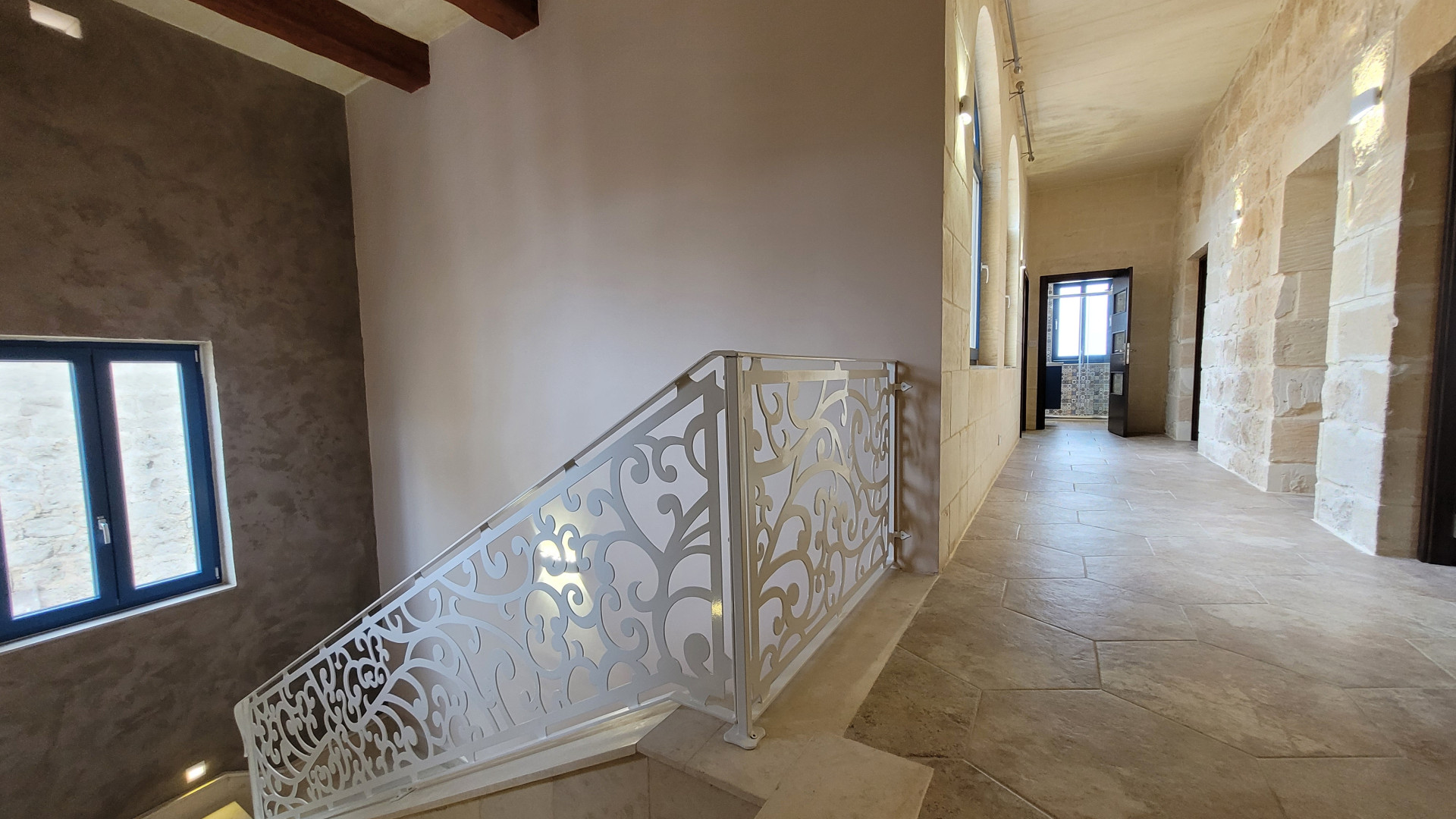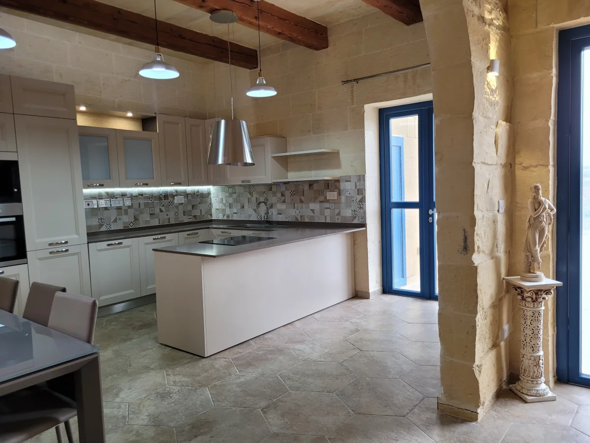 The ground floor features a spacious, modern kitchen and dining area, a separate cozy living area, opening out onto a sizeable terrace with a swimming pool, enjoying panoramic views. Further, on this level, is a bedroom with en-suite facilities. Upstairs, one will find a family bathroom and three double bedrooms, one with a balcony and another with a terrace offering spectacular country and distant sea views with the master bedroom also having an en-suite.
