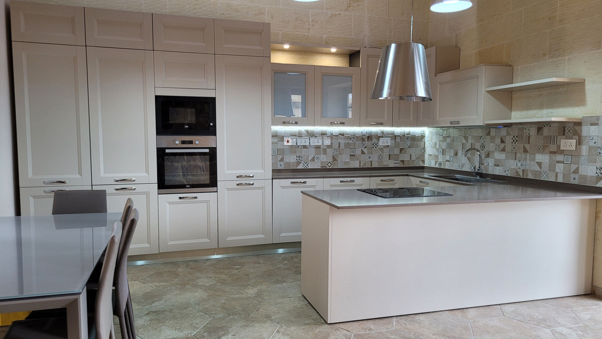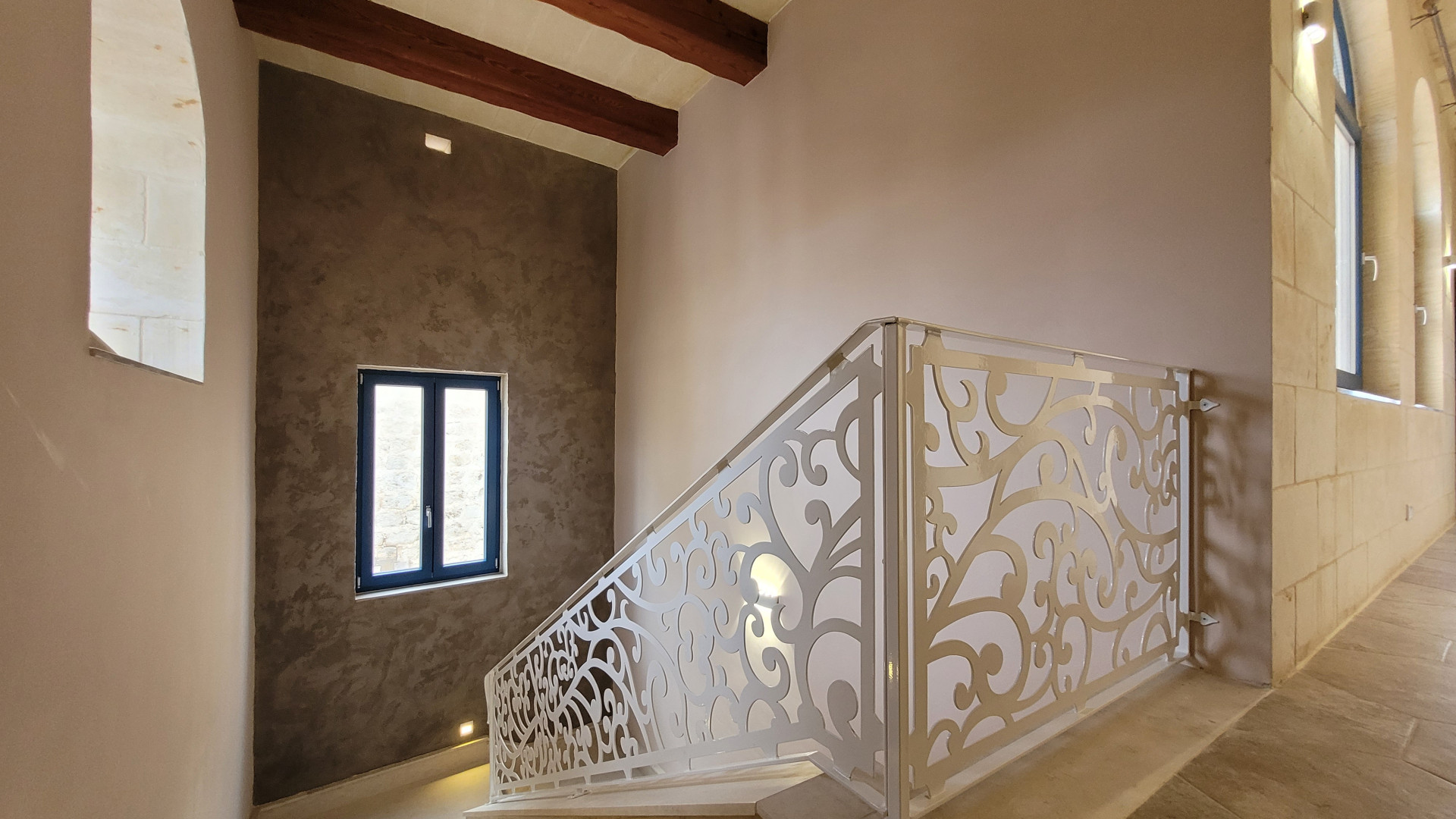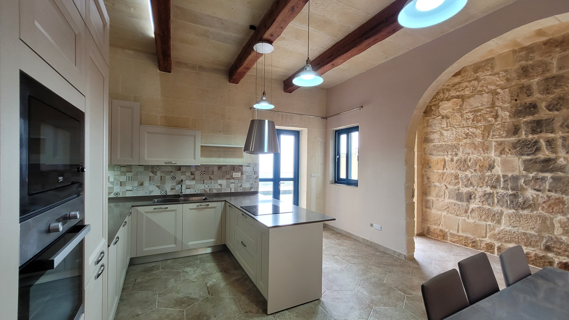 The ground floor features a spacious, modern kitchen and dining area, a separate cozy living area, opening out onto a sizeable terrace with a swimming pool, enjoying panoramic views. Further, on this level, is a bedroom with en-suite facilities. Upstairs, one will find a family bathroom and three double bedrooms, one with a balcony and another with a terrace offering spectacular country and distant sea views with the master bedroom also having an en-suite.