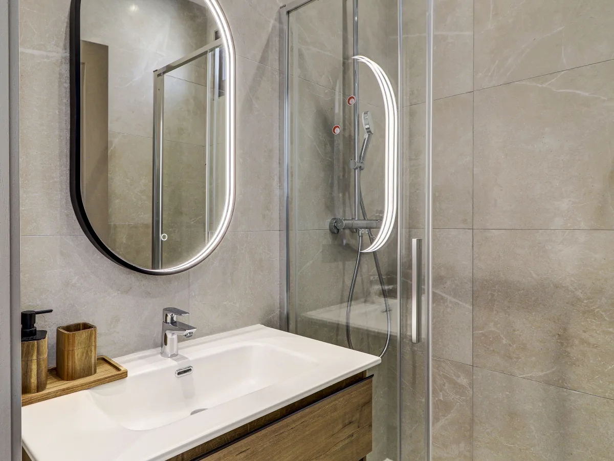 The lower level welcomes you with a fully equipped kitchen complete with a wine cooler, full fridge and freezer, and integrated hob. A dedicated laundry room with washer and dryer adds convenience, while a wrap-around terrace provides abundant natural light and outdoor living space. This floor also includes a study area which can potentially be the fourth bedroom, a bedroom with twin beds with en-suite shower, and a main bathroom featuring a bathtub.
