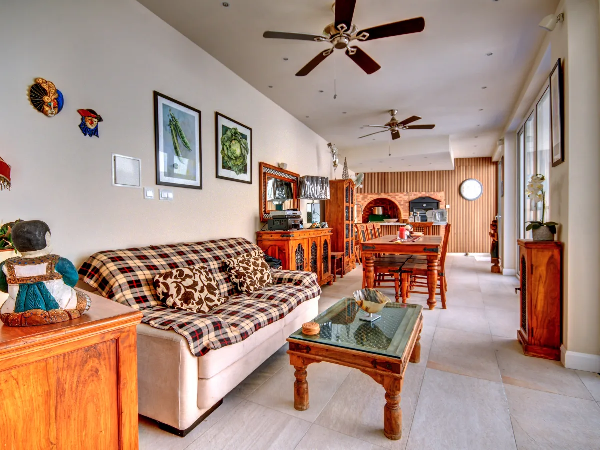 Upstairs one finds well proportioned four double bedrooms, each with its own en-suite facilities and pellet stoves creating a warm and inviting atmosphere. An additional living space completed with a kitchenette featuring a wood-burning oven and barbecue, provides the perfect setting for gatherings. Adding to the allure of this magnificent home is a large sun terrace overlooking the serene views of the pool area.