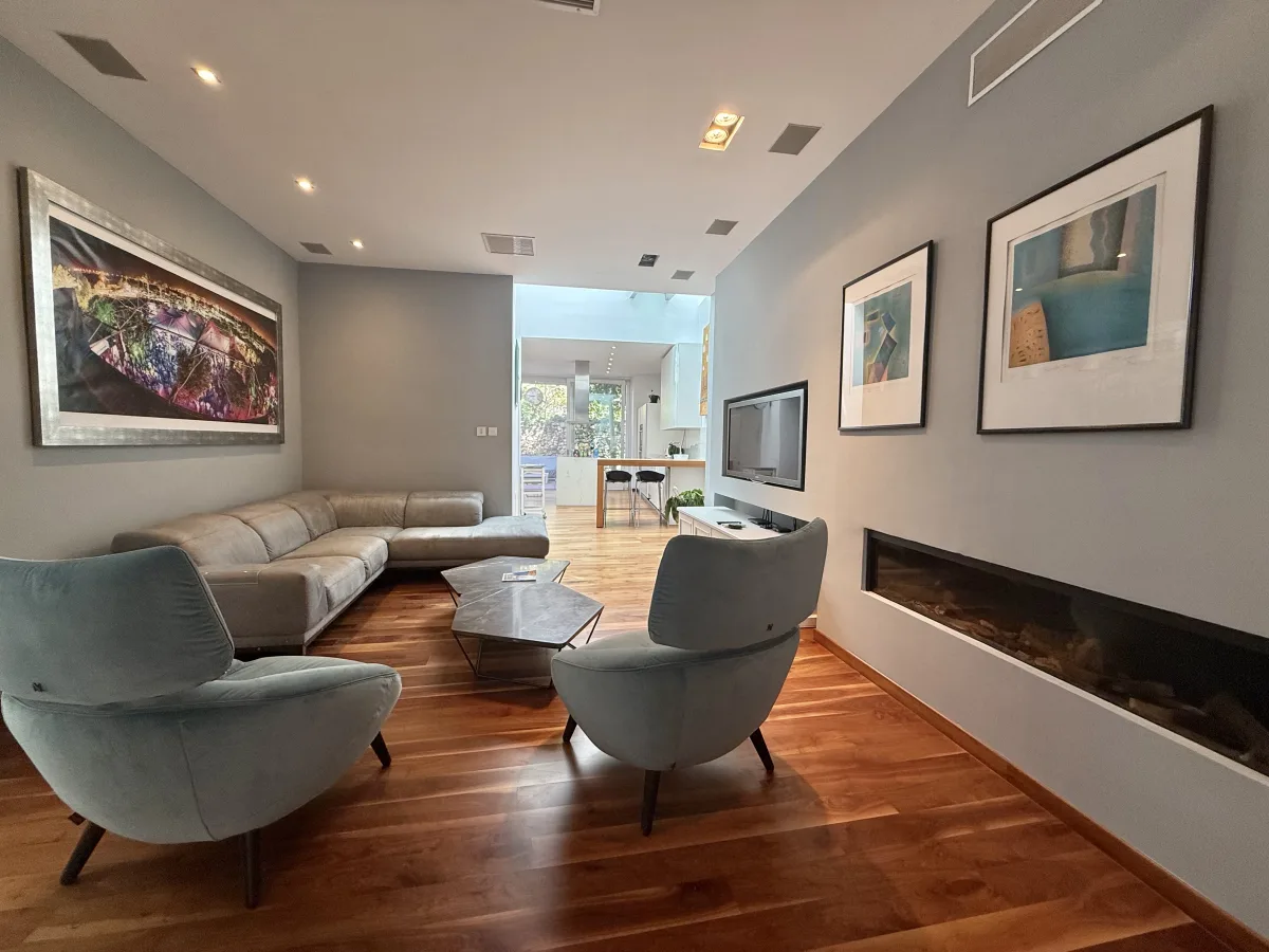 The open plan living, dining ,kitchen and breakfast area is thoughtfully designed and is the perfect setting for gatherings with family and friends. Step outside and discover a tranquil garden retreat, a rare find for this location. This secluded haven provides a perfect spot for relaxation and outdoor entertaining. At ground floor level is also a spacious room, which can be used for a multitude of purposes, and a guest WC. The first floor features three double bedrooms, each with en-suite facilities, whilst the main bedroom has a spacious walk in closet, also on this level is a large laundry and storage room. At roof level is another spacious room which can easily be converted to a fourth bedroom or home office, whilst having its own private roof terrace and garden.