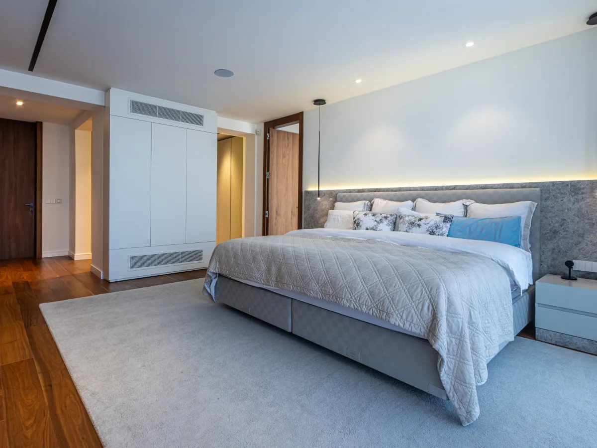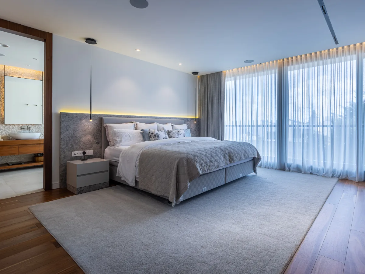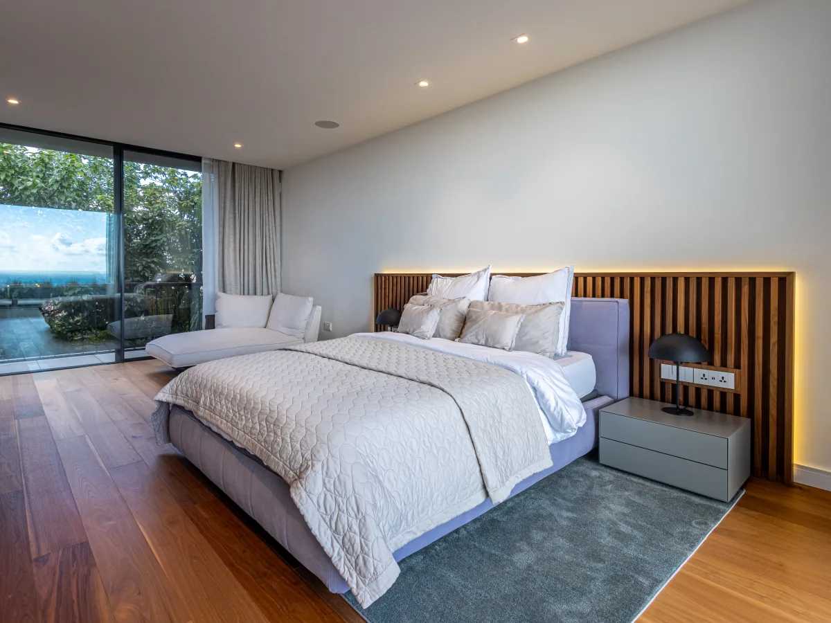 Every detail has been considered with precision and artistry. The bespoke kitchen blends refined design with everyday functionality, featuring premium materials, integrated appliances, and a generous chef’s kitchen or pantry. Four double bedrooms offer understated luxury, with two suites featuring walk-in wardrobes and en suite bathrooms that evoke a boutique hotel ambiance. Each space has been conceived to balance light, privacy, and serenity.