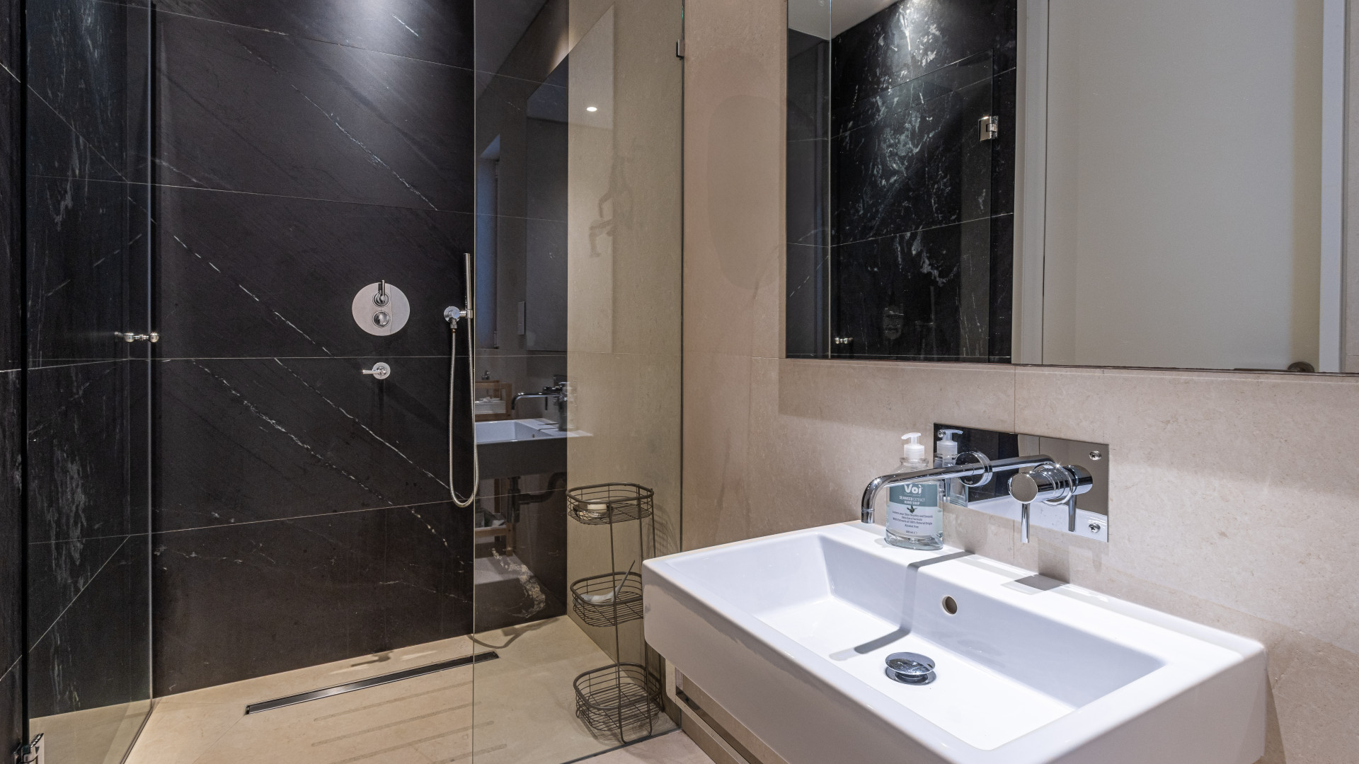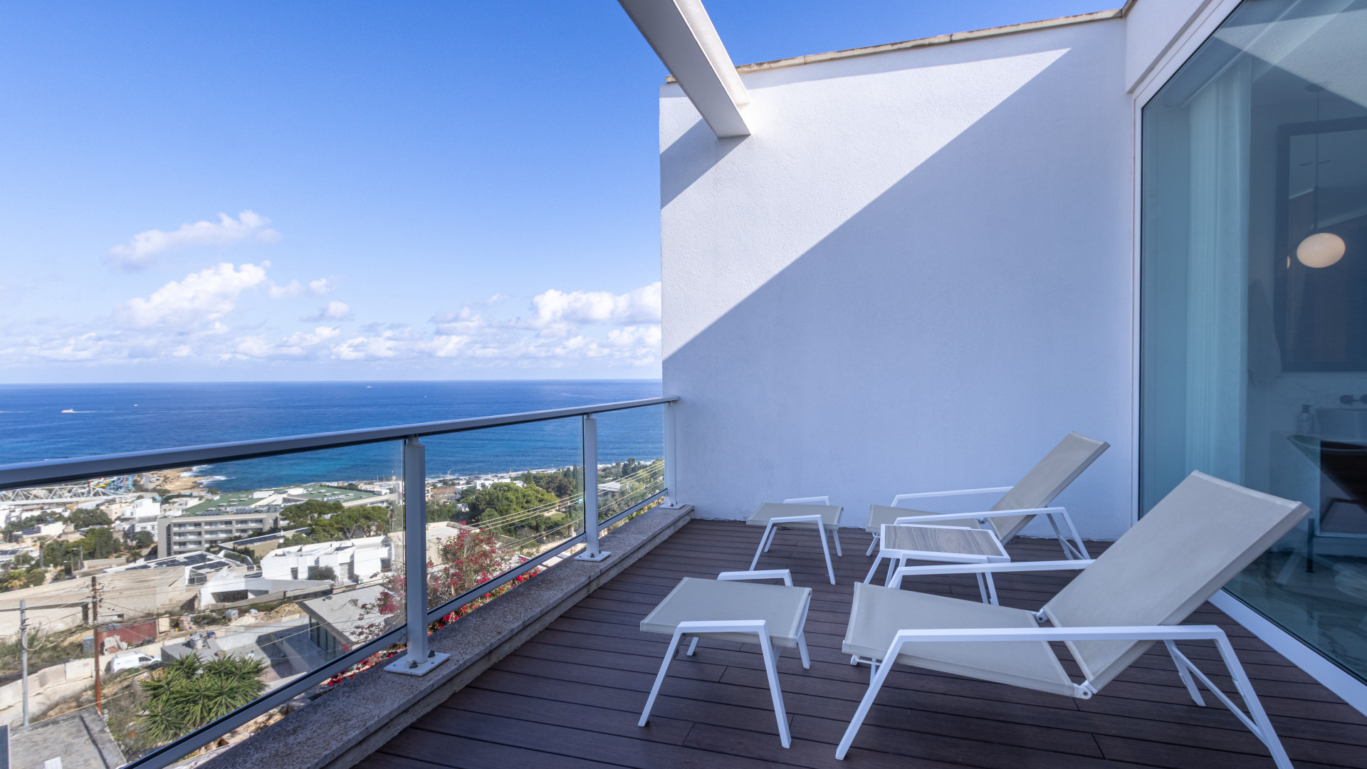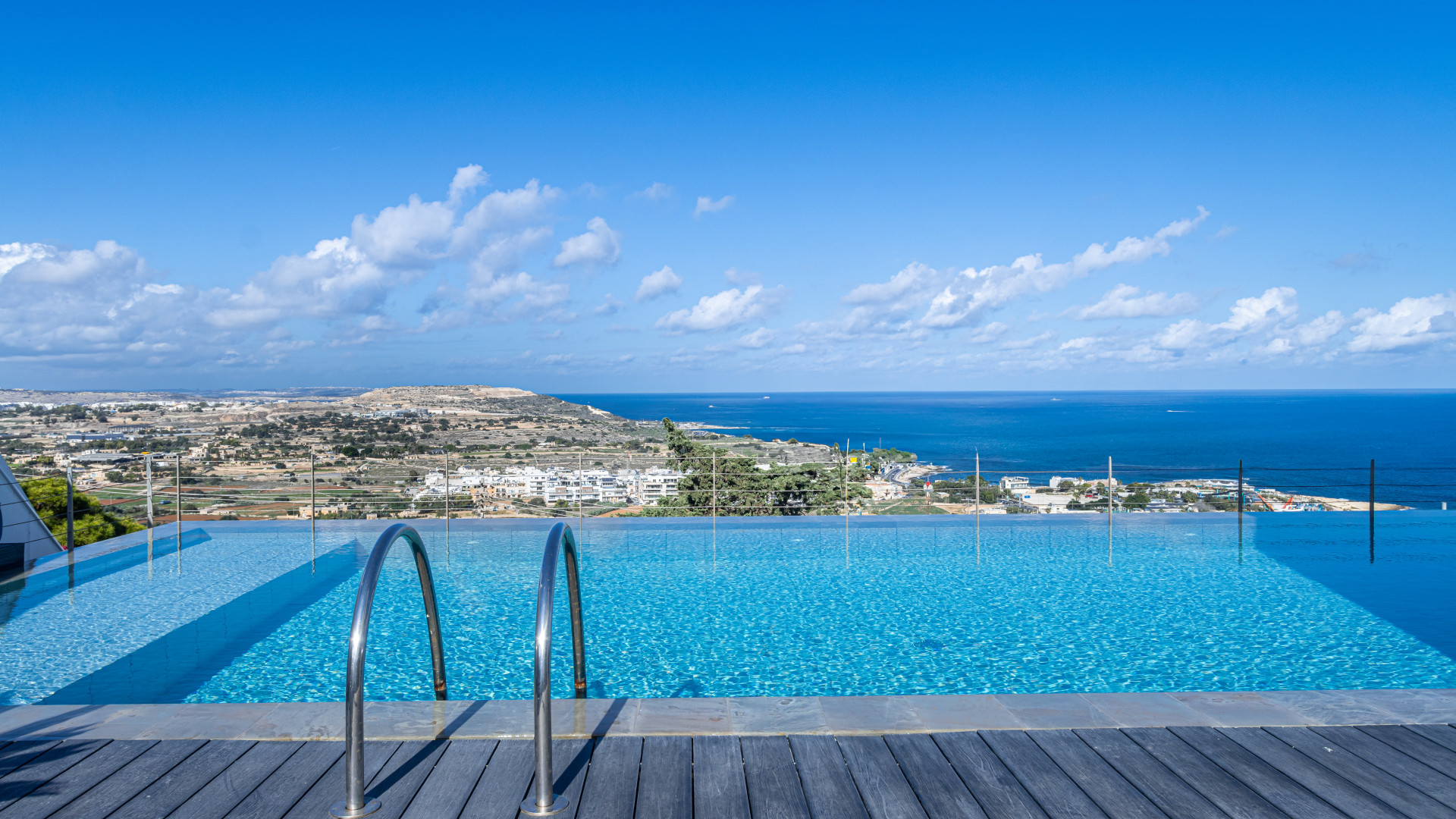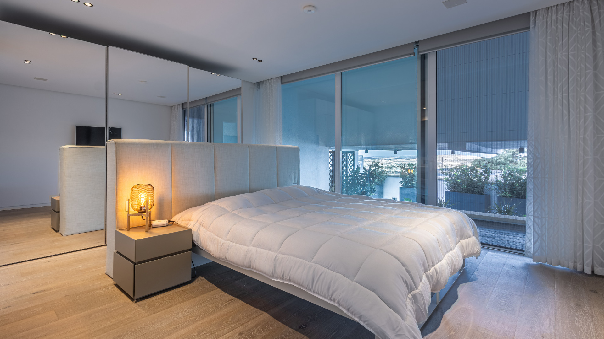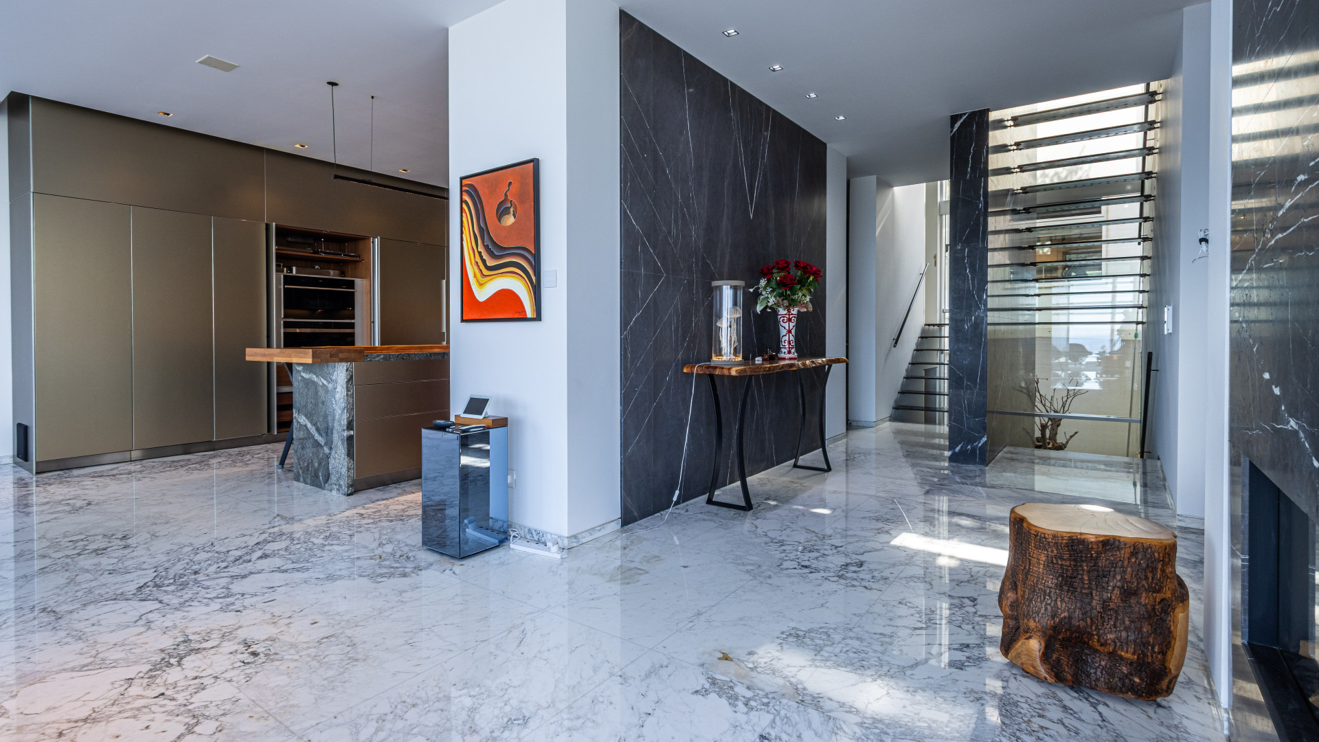 Upon entering this impressive residence through its striking single hinge swivel front door, one is immediately struck by the superior finishes and the stunning views stretching over the infinity pool, down the valley, and out to the sea. The open-plan living area, together with a newly installed, fully fitted kitchen featuring top-end appliances, overlooks the pool and spacious terrace perfect for entertaining. A separate dining area and guest powder room complete this level.