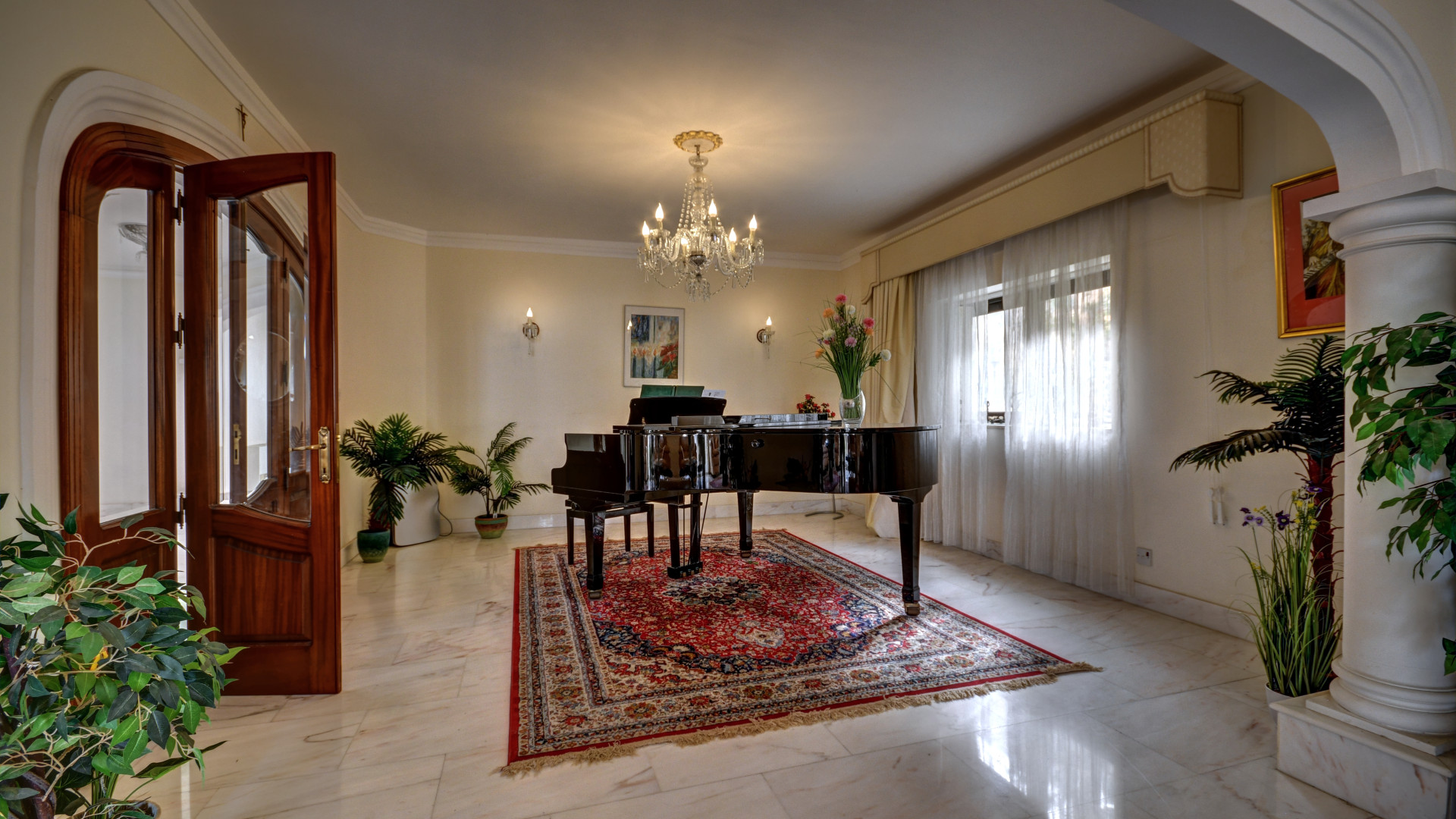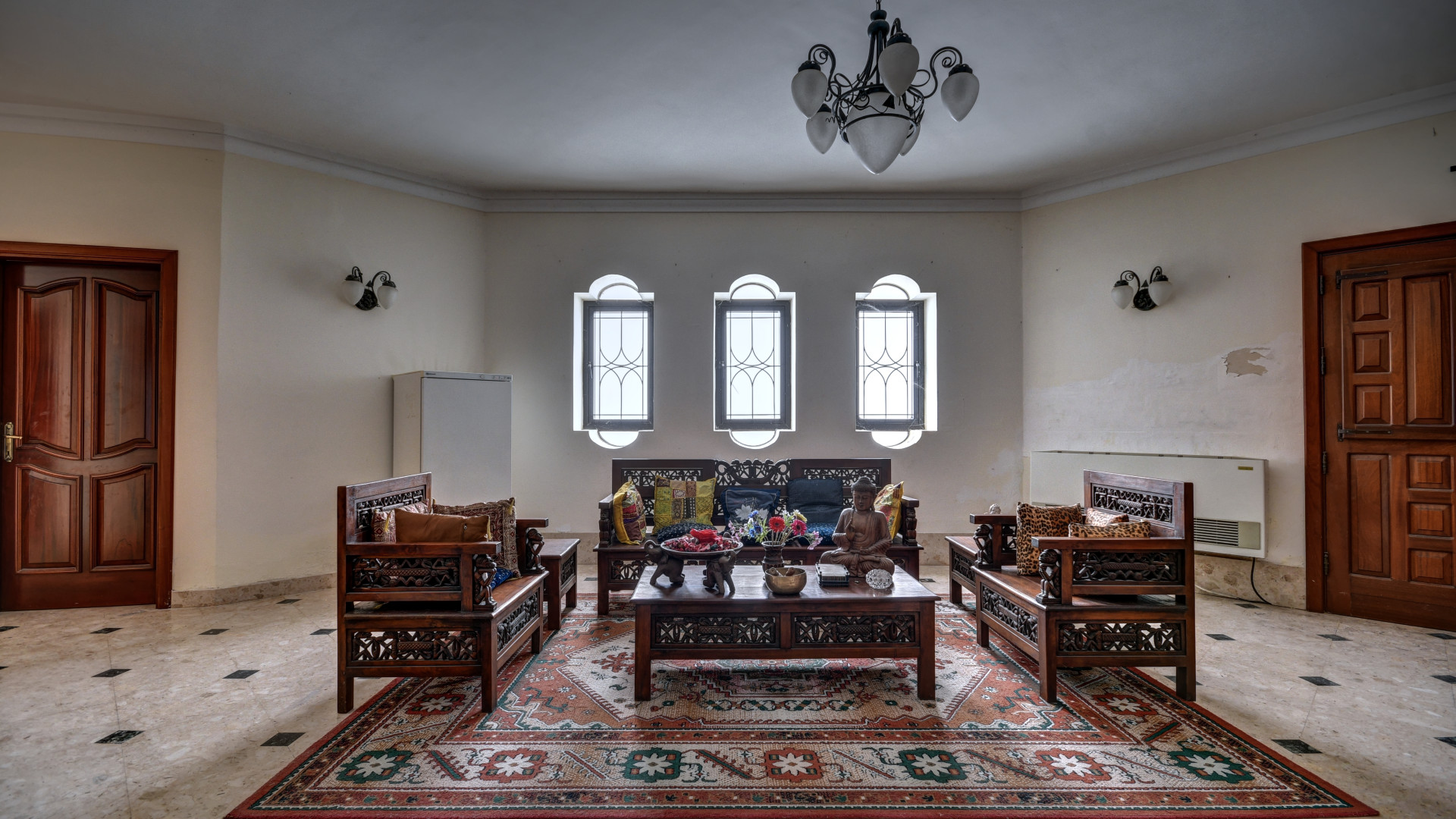 Descend to the ground level, featuring another reception hall, lounge, kitchen, dining and living room, main bedroom, spare bedroom and a study. Each room on this floor, boasts high ceilings, adding to the sense of grandeur.