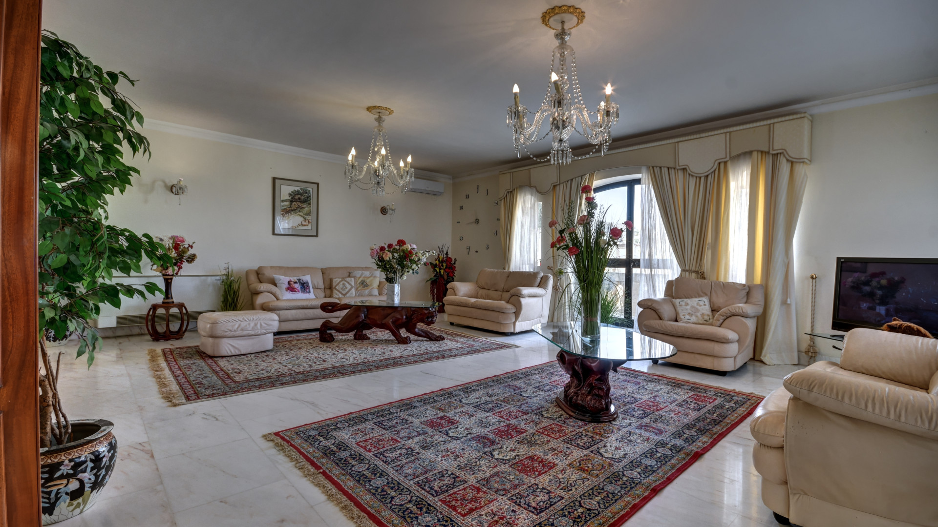 The second floor comprises a spacious main bedroom with an en-suite bathroom, three additional large bedrooms and a family bathroom. A balcony and a terrace completes this floor, showcasing panoramic sea and city views, including vistas of Valletta.
