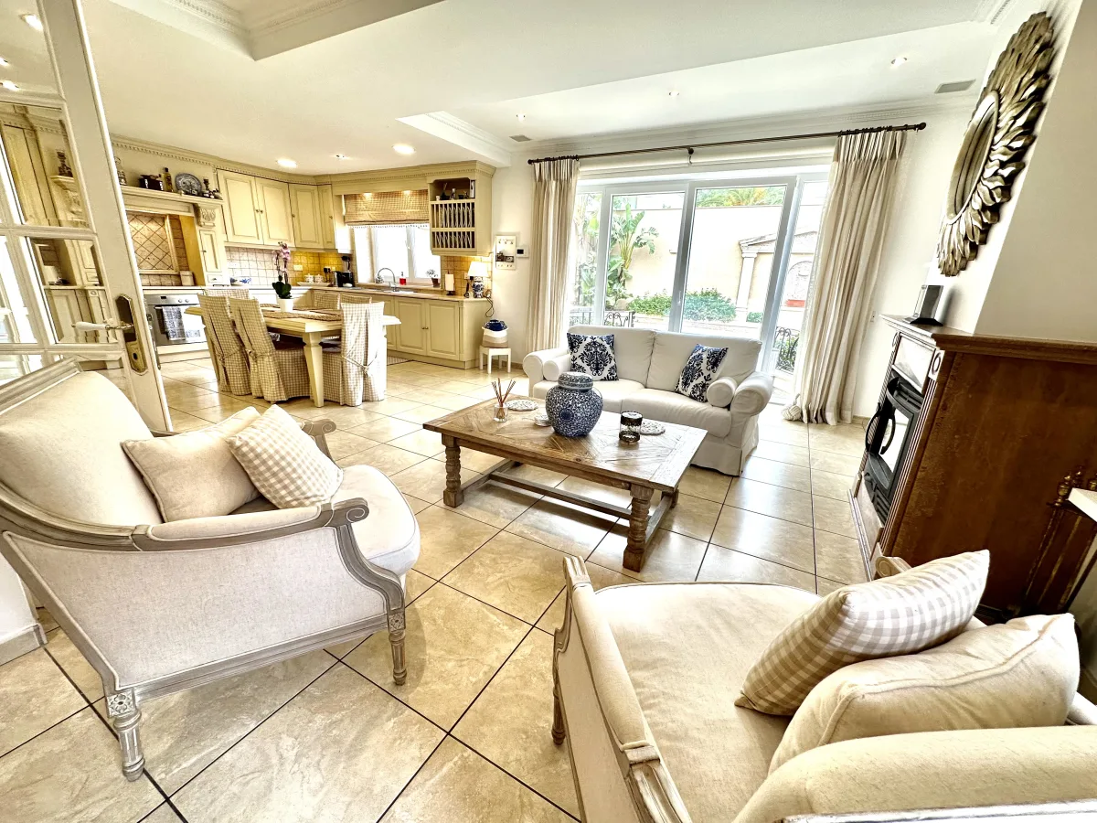 Further complimenting this lovely home is an interconnecting flatlet which has been done up with the same eye for detail as the main residence itself. A double bedroom with a pretty circular bed, a bathroom, walk in wardrobe, a games room with a large billiard table together with a fully equipped kitchen dining room and living room are all bathed in natural light and have access directly the pool. A two car garage, two car carport, a laundry and full roof complete this property.