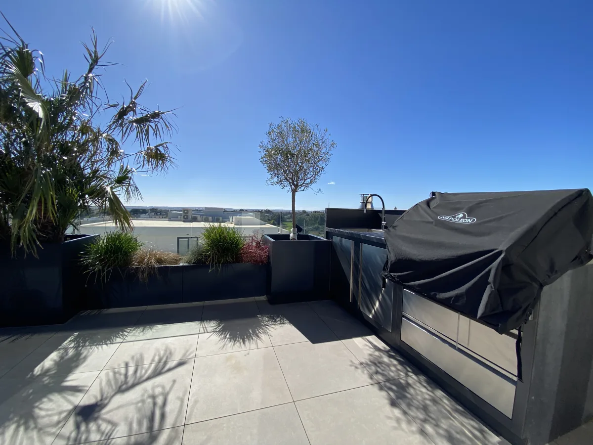 The rooftop level hosts a versatile home office with a bathroom, leading to an enchanting roof terrace, with a BBQ area and fire pit, providing an idyllic setting for outdoor gatherings against a backdrop of lovely open views.