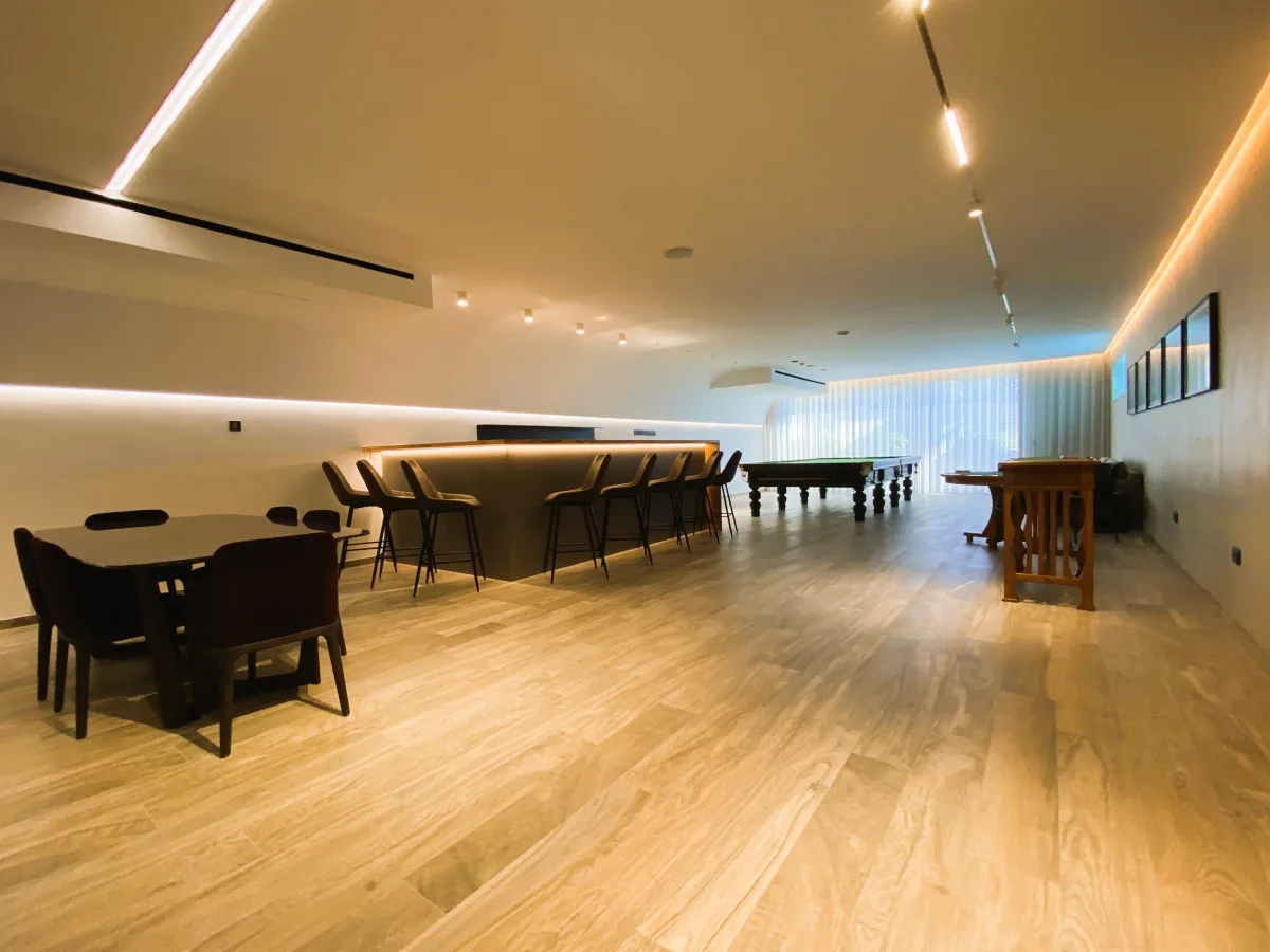 Descending to the lower levels, residents are greeted by a myriad of amenities designed for relaxation and entertainment. Level minus one offers a luxurious retreat, featuring an indoor heated pool, sauna, Turkish steam room, lounge area with cinema, bar, and games room equipped with snooker and poker tables. Additionally, a four-car lock-up garage provides ample parking space.