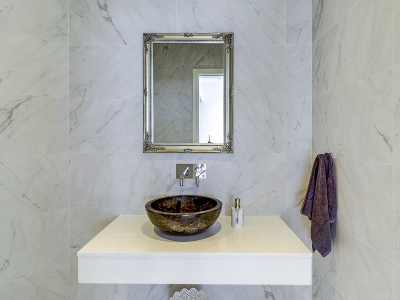 The open-plan living space features a large kitchen with an island, a dining area and a living room leading out to two west-facing terraces, perfect for enjoying sunsets all year round. The property also includes a laundry room, storage room, study, guest toilet and a driveway with an interconnecting two-car garage. All rooms have wide apertures and benefit from plenty of natural light.