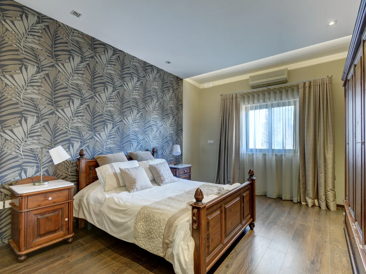 Designed for both relaxation and entertainment, the lower level of the property boasts a spacious open plan kitchen, two elegant living rooms, a dining area, two bathrooms, and an impressive outdoor area with a private swimming pool, perfect for enjoying Malta’s sunny climate.
