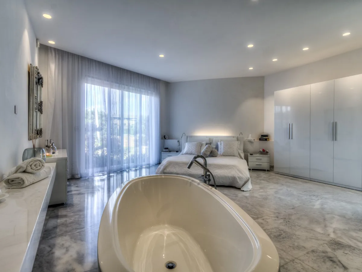 A freestanding staircase leads to a study/library with access to a beautiful terrace overlooking the estate’s magnificent grounds. On the lower level, a wine cellar, games room, and an additional bedroom await, along with an impressive spiral staircase that connects to the pool, terrace, and deck areas.