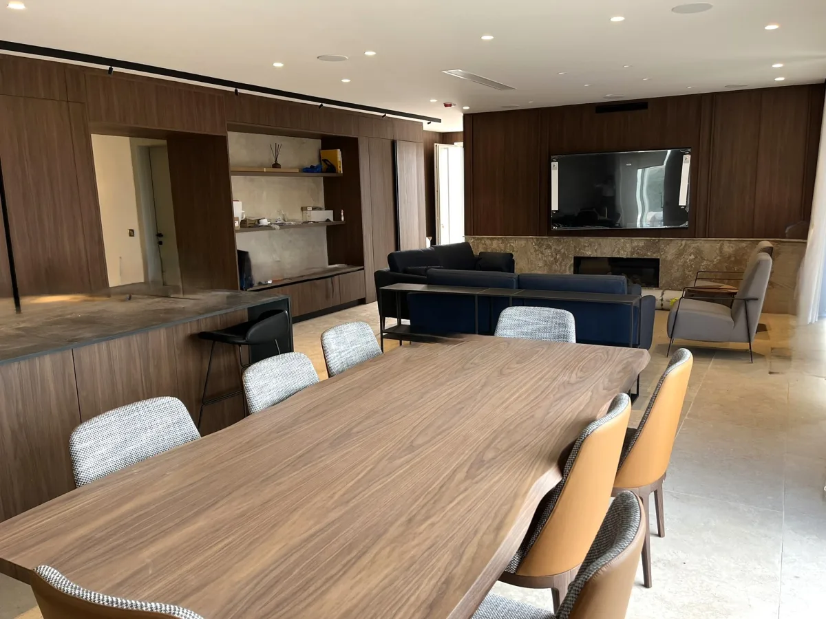 The residence offers an internal area of approximately 350 square metres and comprises five bedrooms accommodating up to twelve guests, six bathrooms, a principal kitchen, a secondary kitchenette, a living room with a fireplace, a laundry room, and a terrace with a jacuzzi. Additional amenities include a gym area and extensive outdoor spaces featuring a barbecue, fire pit, and a lush swimming pool, all designed to provide maximum privacy.