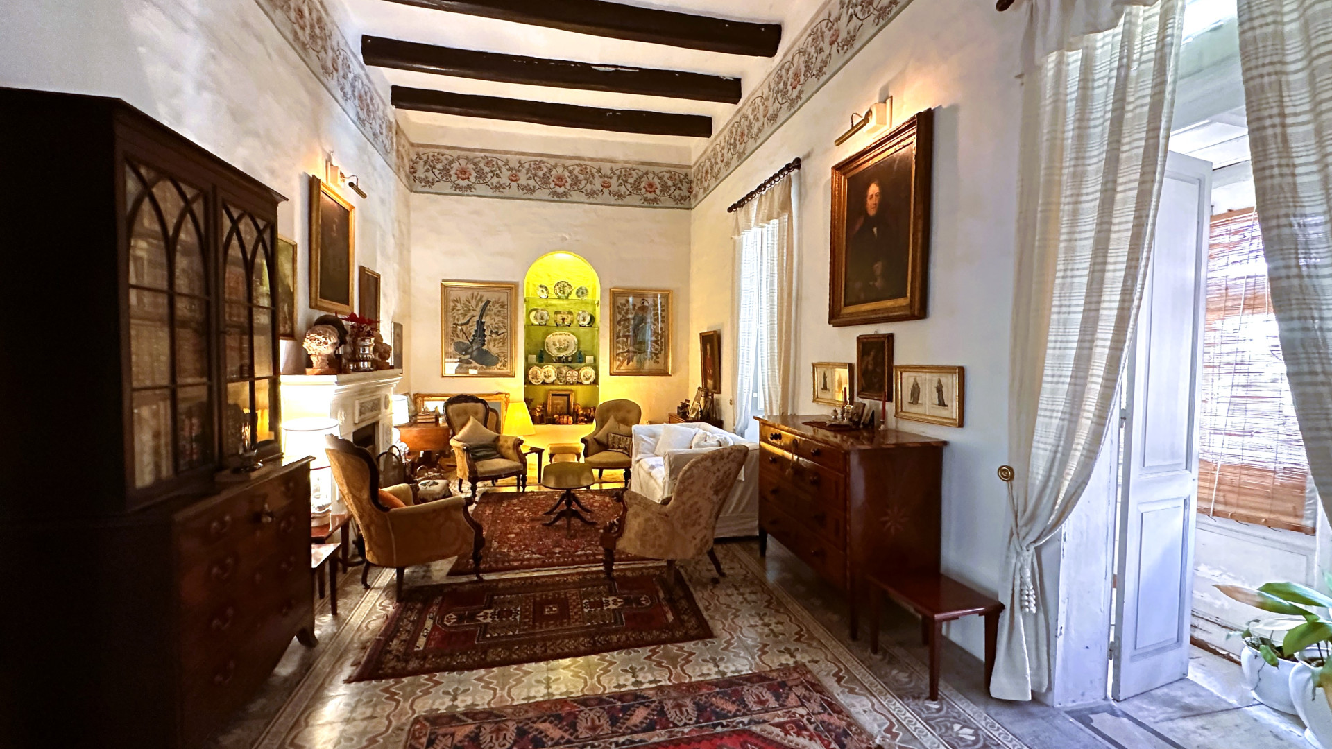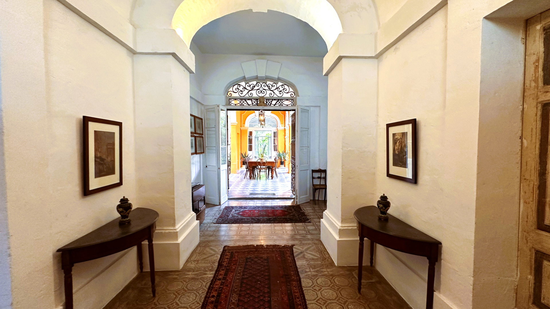 The first floor, features a rich living area or ‘Piano Nobile’ adorned with traditional wooden ceiling beams and typical Maltese floor tiles. A luxurious master bedroom boasts an en-suite bathroom, while a spacious hallway doubles as a serene sitting area leading to a veranda overlooking the lush garden. Two more bedrooms and a dressing room offer comfort for family and guests. Enjoy tranquil views from the conservatory of the two courtyards, or relax in the drawing room with its charming Maltese balcony and cozy study, library room