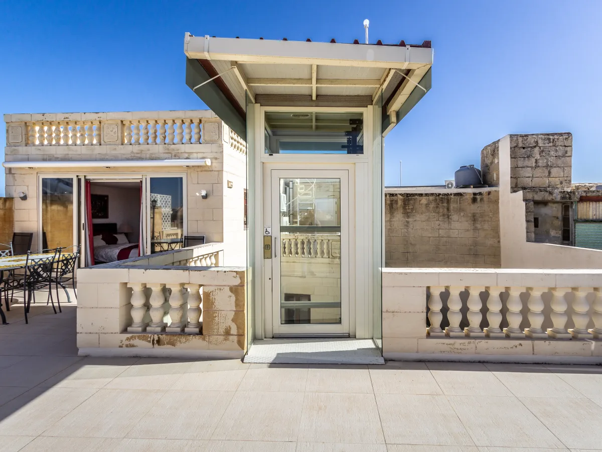 The first floor comprises four double bedrooms, one currently utilized as a living room, cot room, and a separate bathroom. On the second floor, a large modern kitchen and living room, functional jacuzzi, gym, and sunny garden terrace offer a contemporary touch. The lower roof level presents two sunny terraces with open views, a spacious penthouse double bedroom with an en-suite, and a lawn terrace. The upper roof level provides 360-degree panoramic views that encompass the Grand Harbour, Valletta, Mdina and other major historical monuments. The meticulously finished outside terraces feature outdoor tiles, subdued lighting, and sandstone parapets.