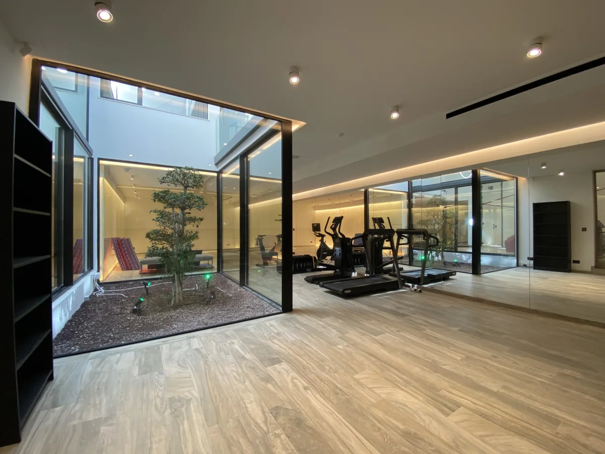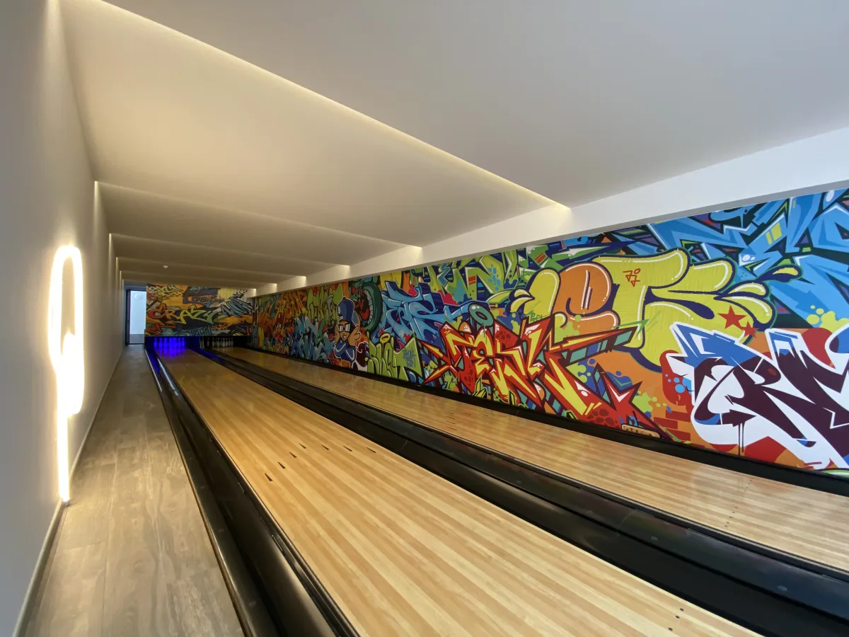 Level minus two is dedicated to an impressive sports area, boasting a two-lane bowling alley, squash court, multipurpose sports room, and fully-equipped gym and exercise room, complemented by a lounge area. Three shower rooms ensure convenience after an active session. A two bedroomed apartment is also found on this level.