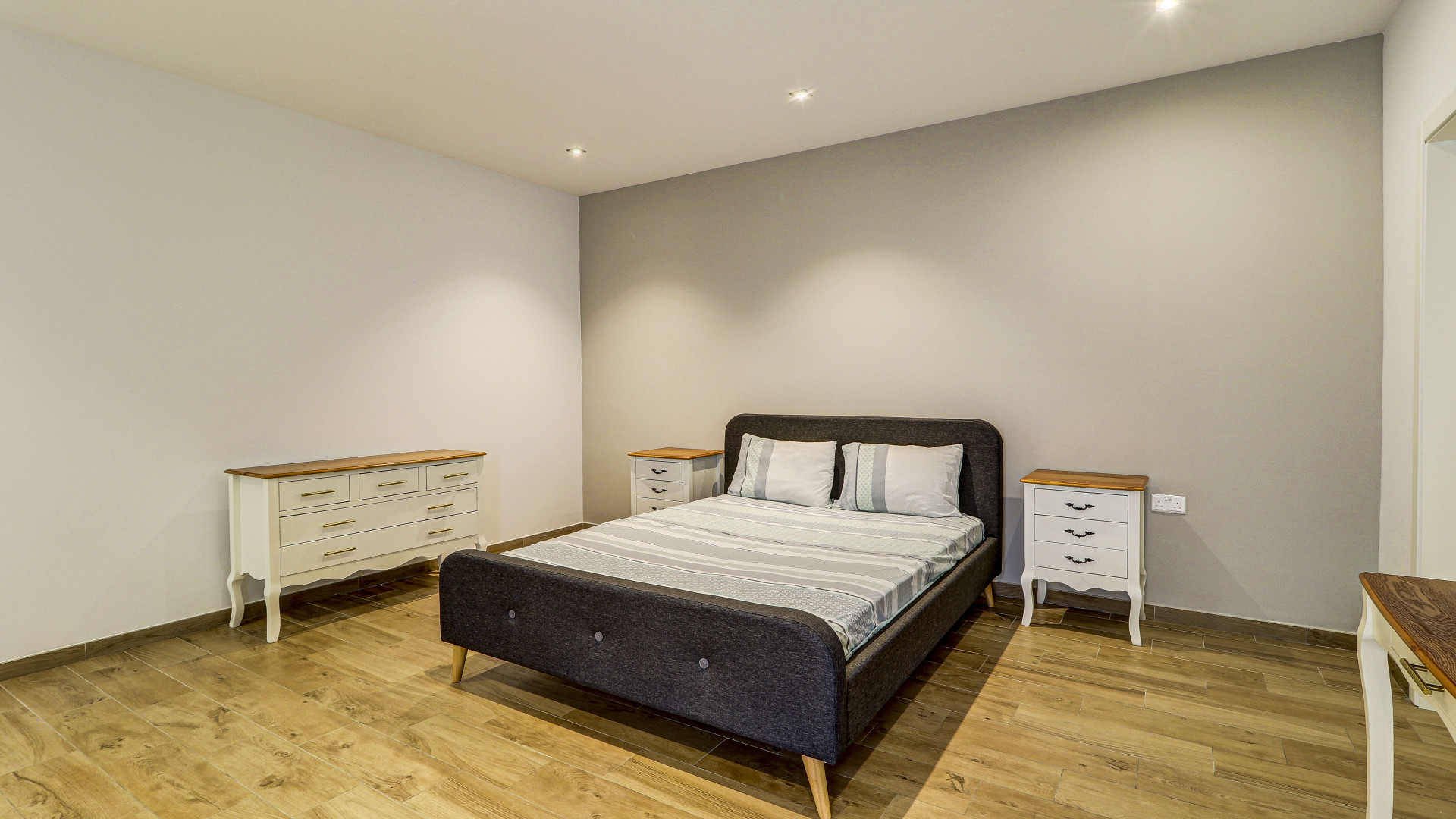 Modern and spacious, the property is spread over two levels and includes six en suite bedrooms, three of which have walk-in wardrobes. Outside, there is a pool and entertainment area with generous deck space, a jacuzzi, a side garden and a poolside shower.