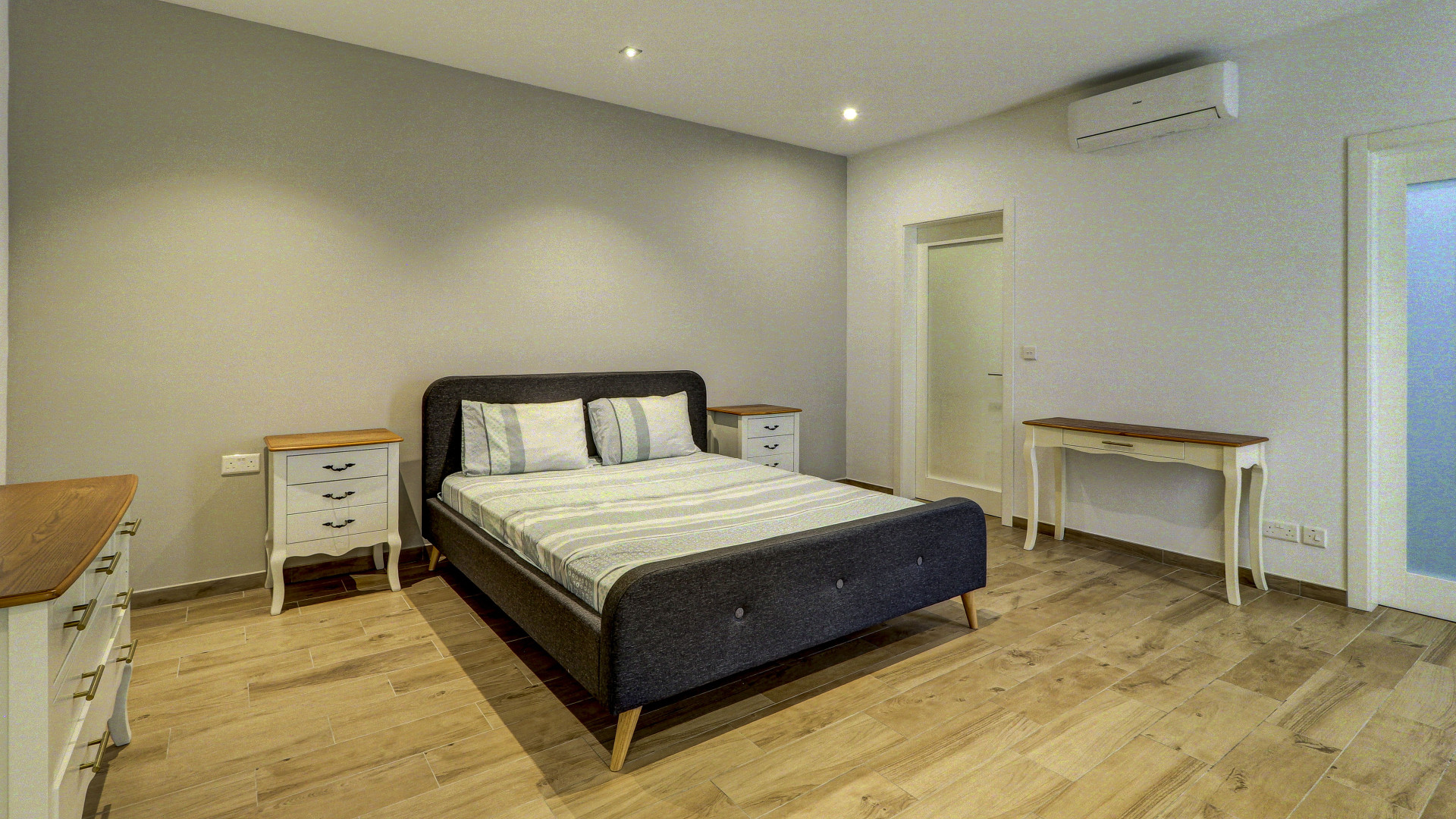 Additional features include double glazing throughout, an intercom and CCTV system, an alarm system and a solar water heater.