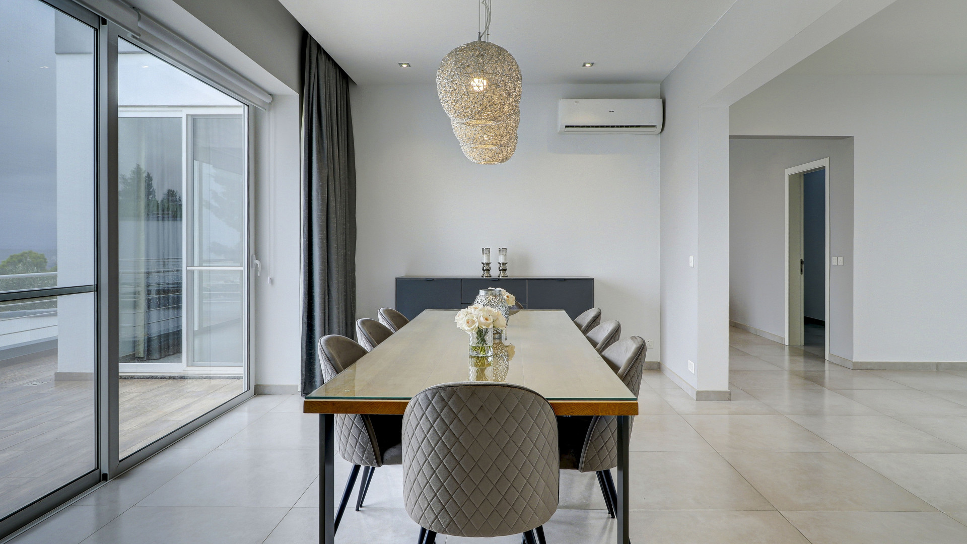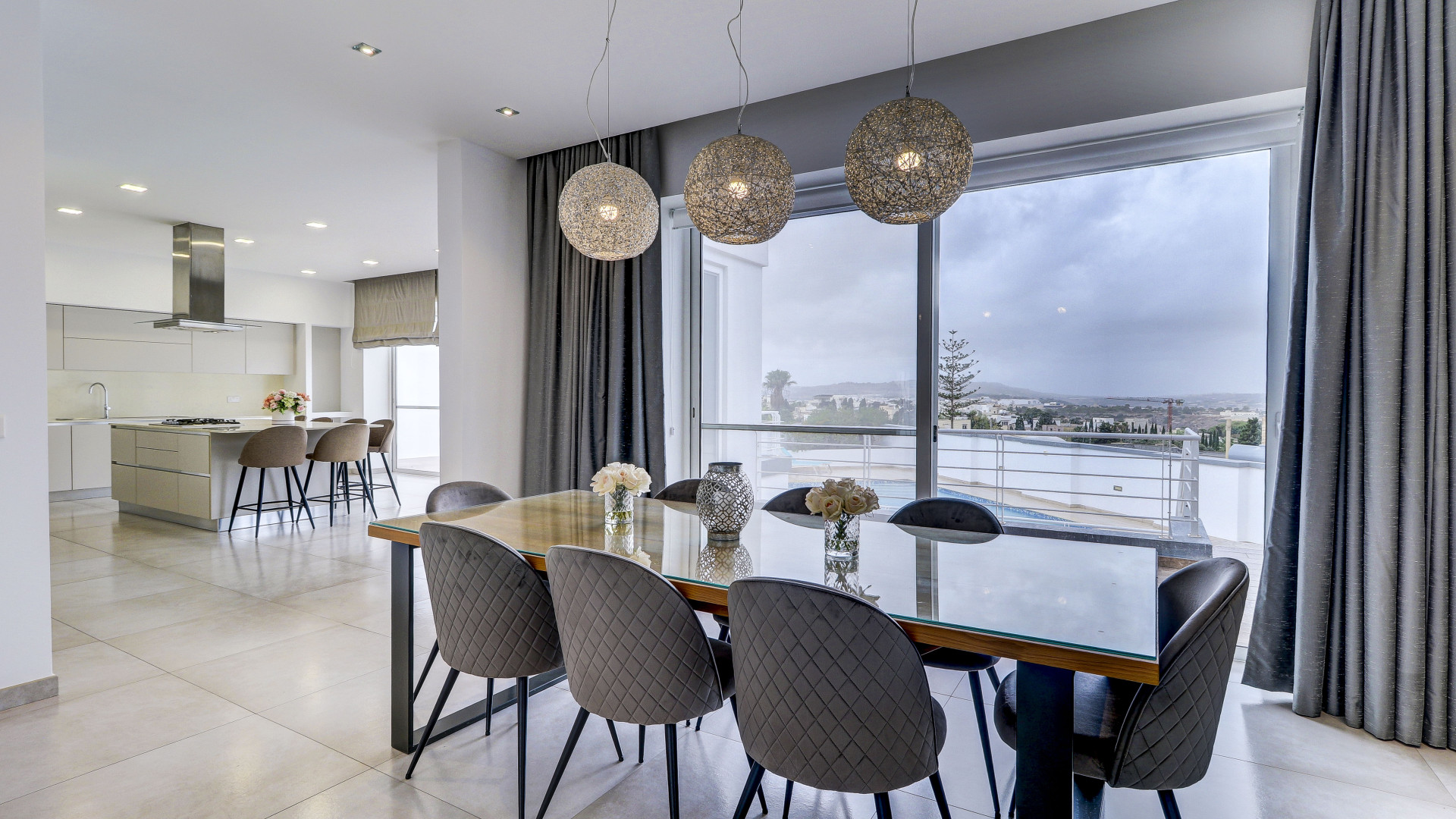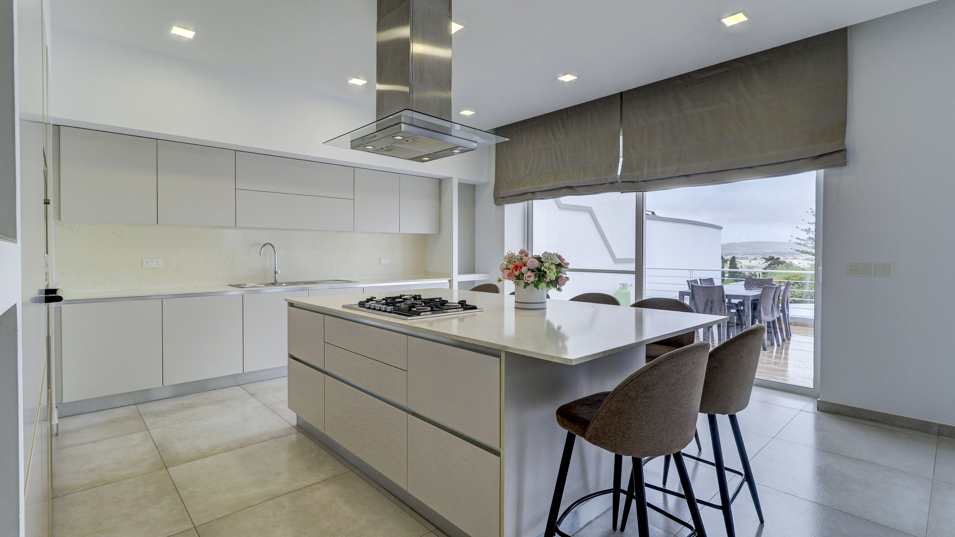 The open-plan living space features a large kitchen with an island, a dining area and a living room leading out to two west-facing terraces, perfect for enjoying sunsets all year round. The property also includes a laundry room, storage room, study, guest toilet and a driveway with an interconnecting two-car garage. All rooms have wide apertures and benefit from plenty of natural light.