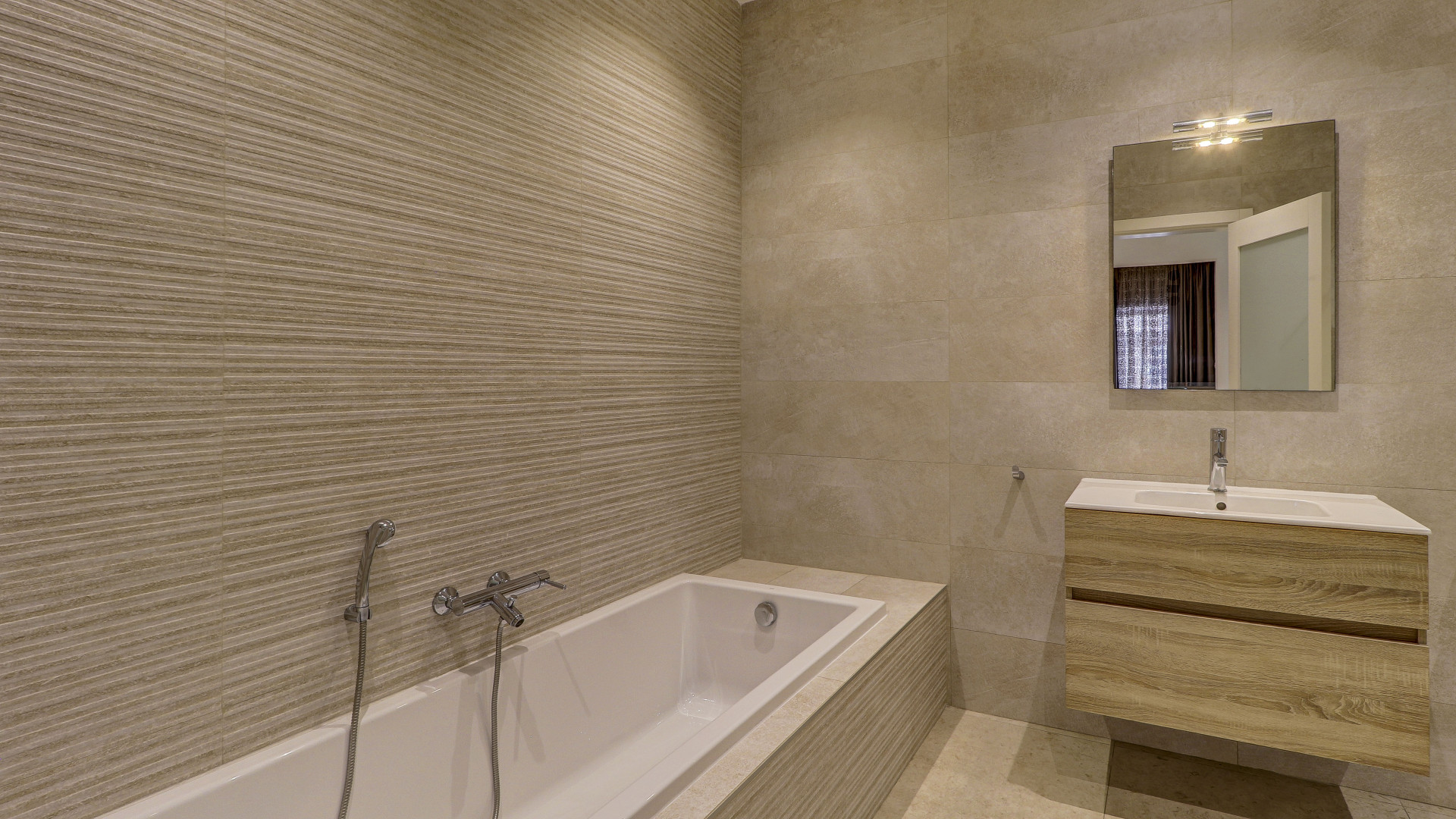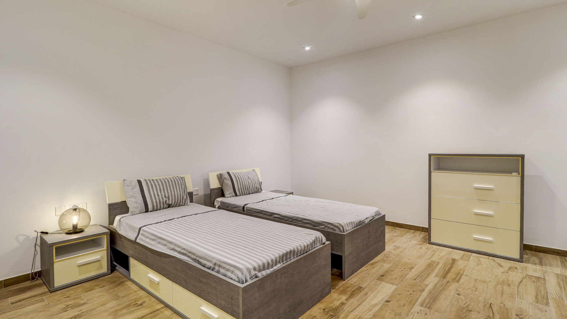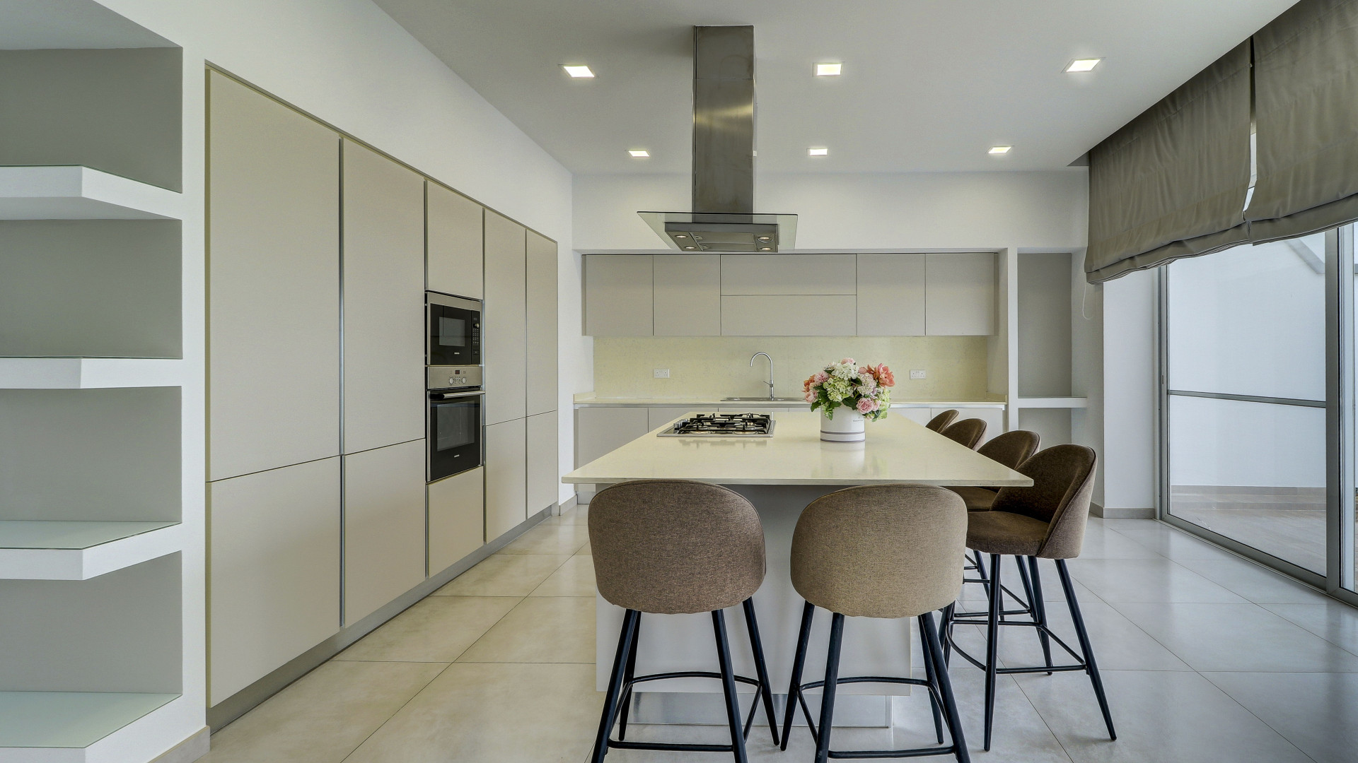 The open-plan living space features a large kitchen with an island, a dining area and a living room leading out to two west-facing terraces, perfect for enjoying sunsets all year round. The property also includes a laundry room, storage room, study, guest toilet and a driveway with an interconnecting two-car garage. All rooms have wide apertures and benefit from plenty of natural light.