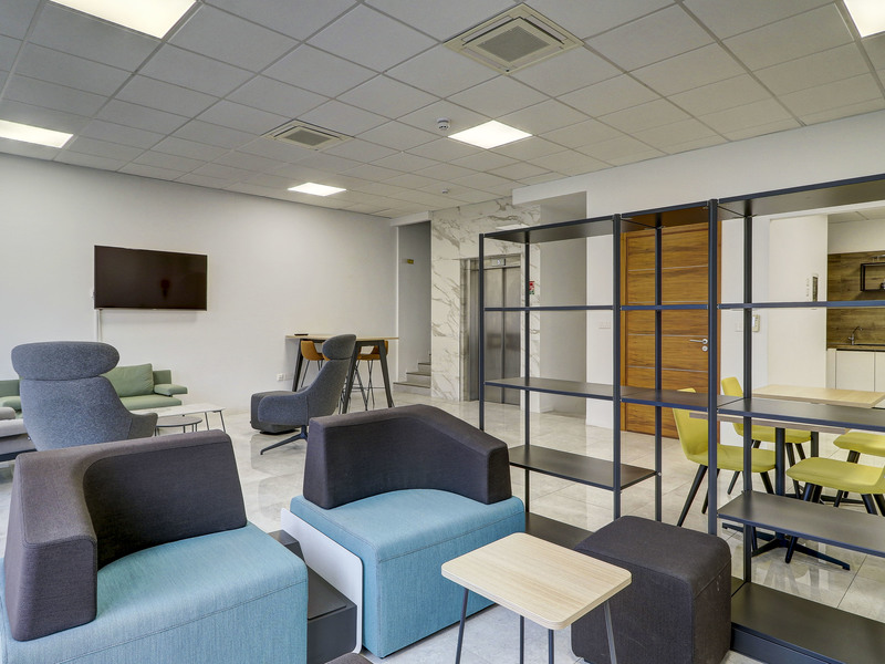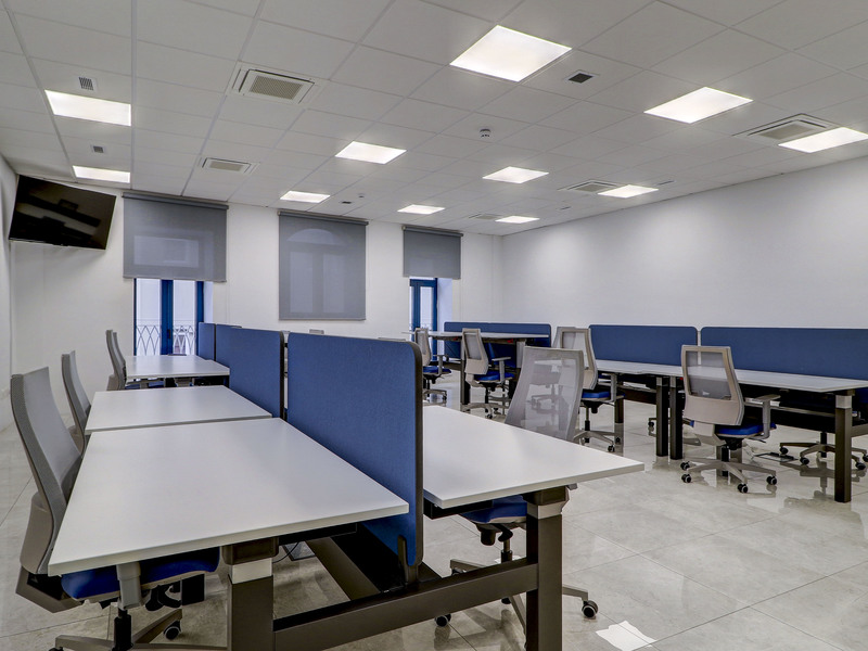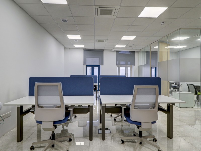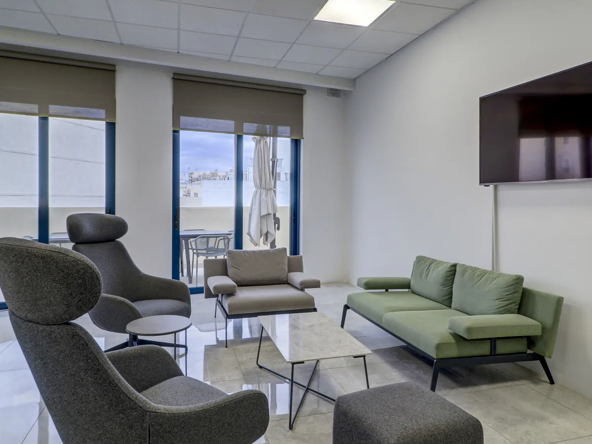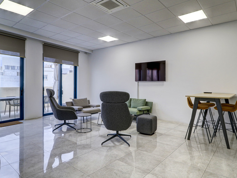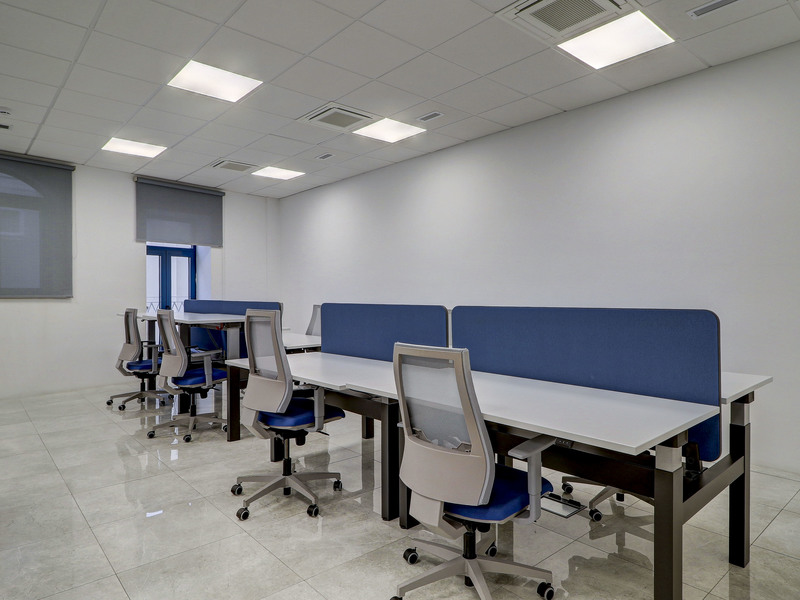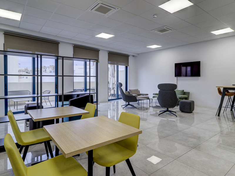 Additional features include two office kitchen setups excluding oven and hob, to be installed on levels specified by the lessee, LED panel and spot lighting throughout ,indoors and outdoors, and a complete Cat 6 cabling system terminated at appropriate patch panels. All floors are interconnected by a fibre optic stem, ensuring high-speed connectivity. Fire rated internal doors around the lift lobby to provide added safety, while bathroom doors are crafted in solid wood with a walnut finish. External apertures are aluminium double glazed, including traditional Maltese-style balconies fitted with Optiphon insulated glass for superior acoustic performance.
