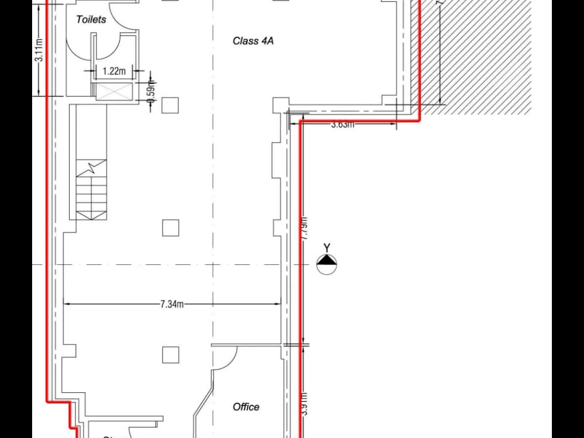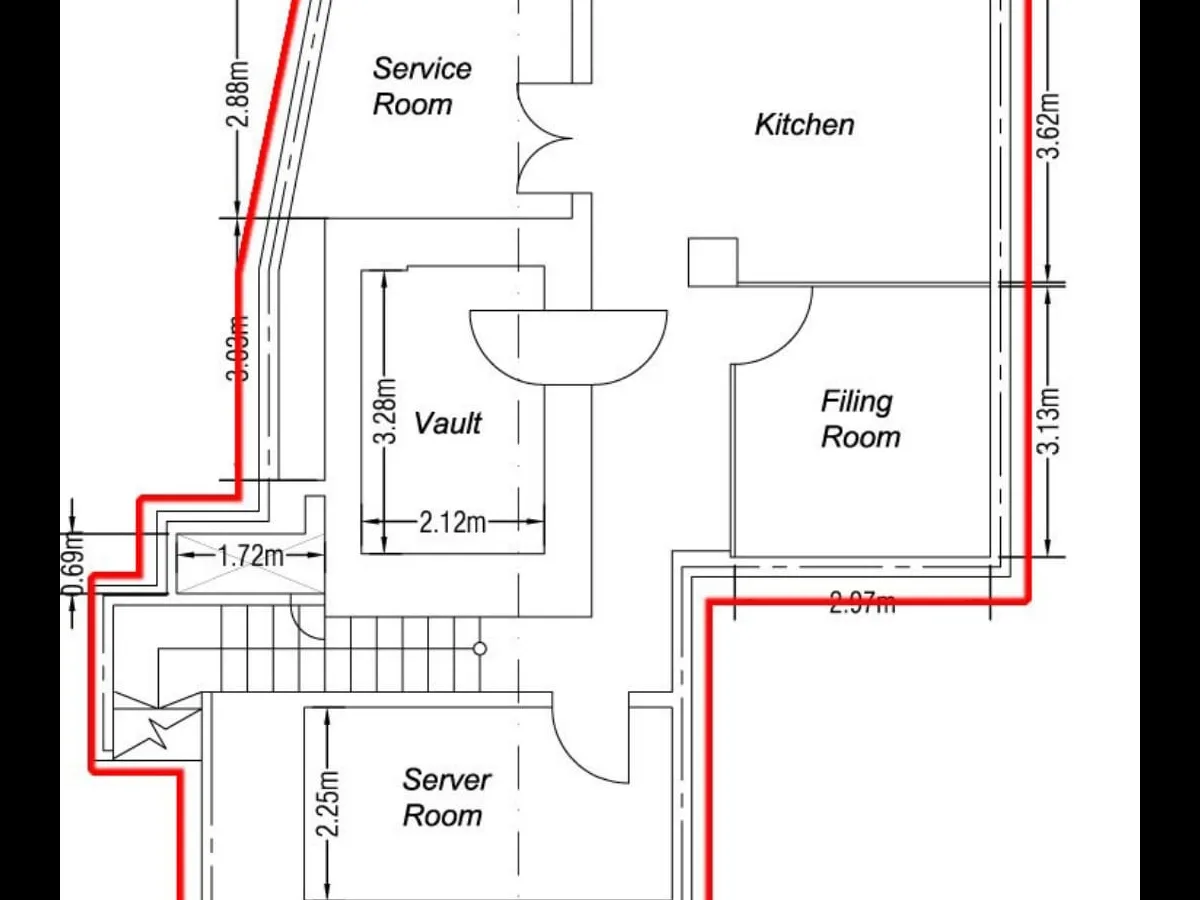 The upper floor is at ground level, and has bullet-proof glass on the internal doors and windows, perfect for any business that needs added security. The space is very open with ample light and data points for a large open-plan workspace. The lower floor has a vault, once again useful for businesses with valuables that need to be stored onsite.